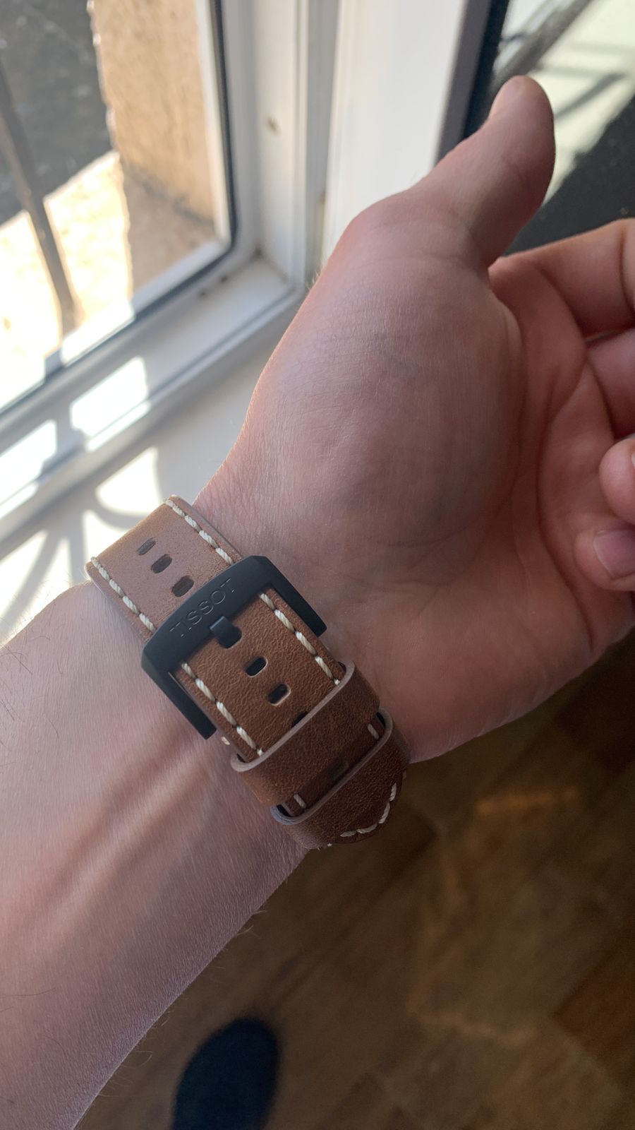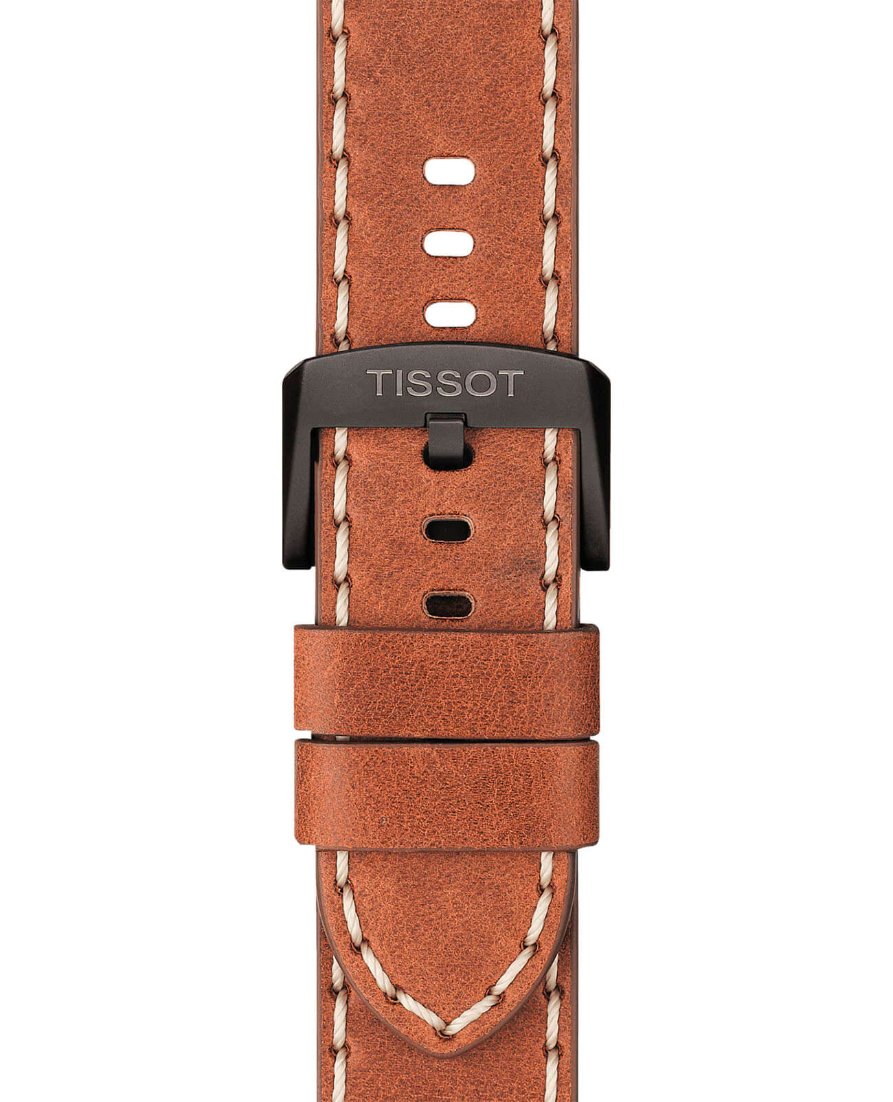 Массивный корпус сделан из нержавеющей стали с PVD-покрытием, защитный слой устойчив к износу и появлению царапин. Необычный кожаный ремешок с белой прострочкой напоминает нам о сотрудничестве Tissot с областью спорта. Кварцевый механизм с высокой точностью хода. Покрытие Superluminova. Сапфировое стекло. Водонепроницаемость 100 метров. Габариты: 42 x 42 x 8,9 мм.
