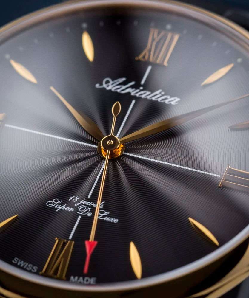 Часы Adriatica A1230.1266MXL представляют собой изысканное сочетание традиционного швейцарского мастерства и современного дизайна. Эти механические часы с калибром Sellita SW210 поражают точностью и надежностью, обеспечивая 42-часовой запас хода. Корпус из нержавеющей стали с PVDPVDУльтратонкое покрытие наносится в технике вакуумного напыления, сочетает в себе нитрид титана особой прочности со слоем золота или оксида хрома. Несёт в себе декоративную или защитную функцию. покрытием придает модели элегантный вид и защищает от внешних воздействий. Циферблат черного цвета с гильошированием завораживает своей текстурой, а римские цифры и штрихи добавляют классический акцент. Прозрачная задняя крышка позволяет любоваться сложной работой механизма. Кожаный ремешок с классической застежкой обеспечивает комфортное ношение и подчеркивает стильный внешний вид. Сапфировое стеклоСапфировое стеклоПрочный и надёжный материал из кристалла сапфира синтетического происхождения, характеризующийся особой твёрдостью и устойчивостью к царапинам и повреждениям. надежно защищает циферблат, а водозащита 30 WR делает эти часы практичным выбором для повседневного использования. Adriatica A1230.1266MXL — это не просто аксессуар, а отражение утонченного вкуса и внимания к деталям, которое станет достойным дополнением к любому образу.