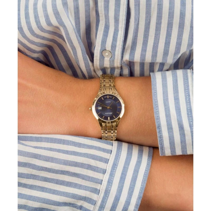Швейцарские мужские наручные часы Adriatica Twin A1236.1115Q, кварцевый механизм с высокой точностью. Сапфировое стеклоСапфировое стеклоПрочный и надёжный материал из кристалла сапфира синтетического происхождения, характеризующийся особой твёрдостью и устойчивостью к царапинам и повреждениям. устойчивое к появлению царапин, обладающее высокой прозрачностью. Класс водозащиты: 50 метров, позволит защитить корпус от случайных брызг или капель дождя. Корпус часов изготовлен из стали с PVDPVDУльтратонкое покрытие наносится в технике вакуумного напыления, сочетает в себе нитрид титана особой прочности со слоем золота или оксида хрома. Несёт в себе декоративную или защитную функцию. покрытием. Часы оснащены оригинальным литым браслетом со съемными секциями, позволяющими регулировать длину. Циферблат окрашен в синий цвет, центр которого украшен гильошированным рисунком в виде дуг, расходящихся от центра до длинных позолоченных маркеров часа.