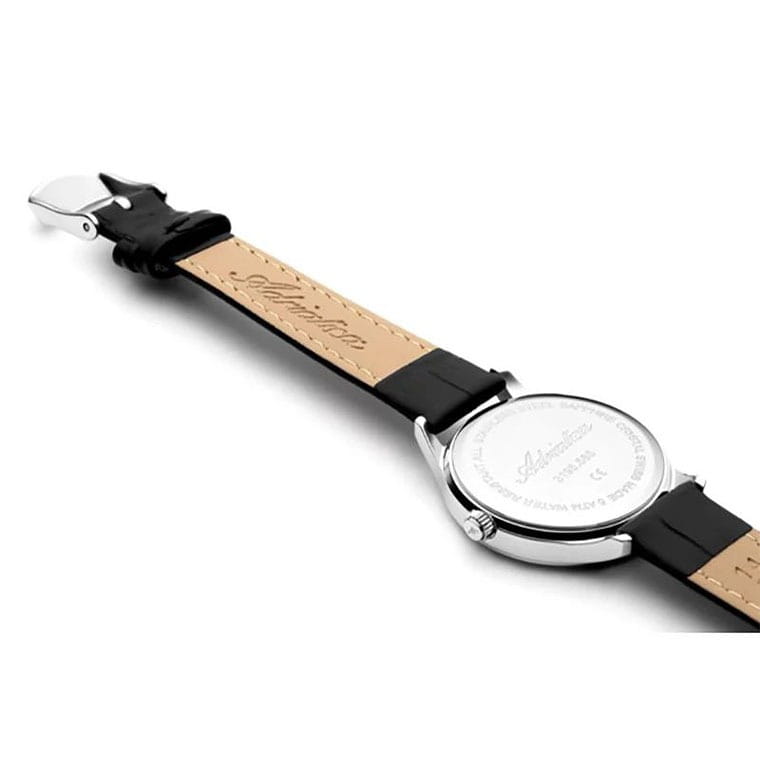 Женские швейцарские часы Adriatica Classic A3195.5213Q имеют кварцевый механизм с высокой точностью. Корпус часов изготовлен из нержавеющей стали. Сапфировое стеклоСапфировое стеклоПрочный и надёжный материал из кристалла сапфира синтетического происхождения, характеризующийся особой твёрдостью и устойчивостью к царапинам и повреждениям. устойчивое к появлению царапин, обладающее высокой прозрачностью, защищает серебристый циферблат, на котором расположилось окошко даты в районе 3 часа. Кожаный черный ремешок со стандартной застежкой обеспечивает комфортное ношение и подчеркивает стильный внешний вид. Надежный кварцевый механизм с калибром RONDA 785 гарантирует точность времени, а водозащита 50 метров, что позволит защитить корпус от случайных брызг или капель дождя.