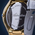 Часы Adriatica A3425.216FQ воплощают в себе утонченность и надежность швейцарского часового искусства. Эти часы идеально подойдут для тех, кто ценит стиль и качество в одном изделии. Перламутровый циферблат защищен минеральным стекломМинеральное стеклоМинеральное стекло представляет собой искусственно выращенный минерал кварца. Такое стекло отличается особой устойчивостью к повреждениям и царапинам. Уступает по некоторым качествам сапфировому стеклу. и заключен в корпус из нержавеющей стали с PVDPVDУльтратонкое покрытие наносится в технике вакуумного напыления, сочетает в себе нитрид титана особой прочности со слоем золота или оксида хрома. Несёт в себе декоративную или защитную функцию. покрытием цвета желтого золота, которое придает дополнительную прочность и элегантный вид. Часы оснащены кварцевым механизмом Ronda 763, обеспечивающим высокую точность и надежность. Водозащита 50WR делает их устойчивыми к воздействию воды, что позволяет не беспокоиться о случайных брызгах. Стальной браслет с частичным PVDPVDУльтратонкое покрытие наносится в технике вакуумного напыления, сочетает в себе нитрид титана особой прочности со слоем золота или оксида хрома. Несёт в себе декоративную или защитную функцию. покрытием цвета желтого золота с раскладной застёжкойРаскладная застёжкаТакой тип застёжки используется только на браслетах из металла. Она никогда не раскрывается полностью, происходит разделение на 2 и более частей. Раскладывающая застёжка снизит вероятность потери часов к минимуму. подчеркивает современный стиль и обеспечивает комфортное ношение.