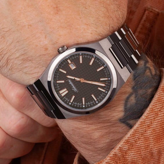 Часы Adriatica A8326.S1R6Q воплощают в себе элегантность и функциональность, идеально подходящие для современных мужчин, ценящих швейцарское качество. Их черный циферблат защищенный сапфировым стекломСапфировое стеклоПрочный и надёжный материал из кристалла сапфира синтетического происхождения, характеризующийся особой твёрдостью и устойчивостью к царапинам и повреждениям., заключен в черный корпус с безелемБезельВнешний ободок, закрепляющий стекло. В спортивных часах так называется поворотное кольцо с делениями на циферблате, выполняет роль таймера – замеряет отрезки времени на шкале. Неподвижный безель – элемент декора. Однонаправленно вращающийся безель на дайверских часах позволяет фиксировать моменты погружения и выныривания на поверхность. из нержавеющей стали c PVDPVDУльтратонкое покрытие наносится в технике вакуумного напыления, сочетает в себе нитрид титана особой прочности со слоем золота или оксида хрома. Несёт в себе декоративную или защитную функцию. покрытием. Надежный кварцевый механизм с калибром ETA F06 обеспечивает высокую точность, а водозащита 5 ATM делает часы устойчивыми к воздействию воды. Стальной браслет c PVDPVDУльтратонкое покрытие наносится в технике вакуумного напыления, сочетает в себе нитрид титана особой прочности со слоем золота или оксида хрома. Несёт в себе декоративную или защитную функцию. покрытием и раскладной застёжкойРаскладная застёжкаТакой тип застёжки используется только на браслетах из металла. Она никогда не раскрывается полностью, происходит разделение на 2 и более частей. Раскладывающая застёжка снизит вероятность потери часов к минимуму. обеспечивает комфортное и надежное ношение. Часы оснащены функцией отображения даты в окошке в положении 3 часа, что добавляет практичности в повседневной жизни. Люминесцентное покрытиеЛюминесцентное покрытиеПозволяет считывать показания времени в темноте. Производители наносят на стрелки, часовые индексы, безель или поверхность циферблата светонакопительный состав, дающий холодное свечение. на стрелках и метках обеспечивает отличную видимость в темноте.