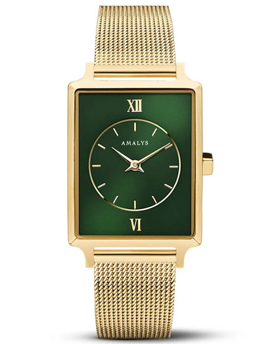 Amalys AMW-036 — женская модель с утончённой минималистичной эстетикой, где корпус с PVD-покрытиемPVDУльтратонкое покрытие наносится в технике вакуумного напыления, сочетает в себе нитрид титана особой прочности со слоем золота или оксида хрома. Несёт в себе декоративную или защитную функцию. размером 23 мм подчёркивает современный характер и чистоту линий. Механизм — точный кварцевый, обеспечивающий стабильный ход и надёжность в повседневном использовании. Поверхность циферблата оформлена в лаконичном стиле с тонкими метками и стрелками, создающими гармонию и визуальную лёгкость. Защитную функцию выполняет минеральное стеклоМинеральное стеклоМинеральное стекло представляет собой искусственно выращенный минерал кварца. Такое стекло отличается особой устойчивостью к повреждениям и царапинам. Уступает по некоторым качествам сапфировому стеклу., устойчивое к механическим воздействиям и сохраняющее читаемость при ежедневной носке. Браслет с PVD-покрытиемPVDУльтратонкое покрытие наносится в технике вакуумного напыления, сочетает в себе нитрид титана особой прочности со слоем золота или оксида хрома. Несёт в себе декоративную или защитную функцию. выполнен в виде «миланской сетки» шириной 14 мм, оснащён раскладным замкомРаскладной замокДанный вариант застежки используется только на часах с металлическим браслетом. Отличительная особенность такого крепления в том, что длина браслета становится универсальной и вы можете самостоятельно отрегулировать нужный вам размер – застежка просто двигается по браслету часов., его гибкая структура обеспечивает комфортное прилегание к запястью и визуальную утончённость. Единство корпуса и браслета создаёт целостный образ, а изысканная простота дизайна делает модель универсальной — она одинаково уместна и в деловой обстановке, и в повседневных сочетаниях.