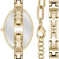 Женские кварцевые часы Anne Klein Box Set 5074GPST представляют собой элегантный аксессуар с овальным корпусом 20×30 мм из латуни с PVDPVDУльтратонкое покрытие наносится в технике вакуумного напыления, сочетает в себе нитрид титана особой прочности со слоем золота или оксида хрома. Несёт в себе декоративную или защитную функцию.-покрытием в золотистом оттенке и обрамленный бриллиантами. Модель оснащена кварцевым механизмом японского производства с точностью хода ±20 секунд в месяц и аналоговой индикацией времени. Циферблат бежевого цвета с позолоченными стрелками защищен минеральным стекломМинеральное стеклоМинеральное стекло представляет собой искусственно выращенный минерал кварца. Такое стекло отличается особой устойчивостью к повреждениям и царапинам. Уступает по некоторым качествам сапфировому стеклу., устойчивым к царапинам. Водонепроницаемость 30 метров (3 атм) обеспечивает защиту от брызг и дождя. Металлический браслет из нержавеющей стали шириной 20 мм и так же обрамленный бриллиантами, гармонично сочетается с корпусом, создавая целостный образ. Часы толщиной 6 мм отличаются утонченным профилем и комфортной посадкой на запястье. Прилагается два дополнительных браслета.