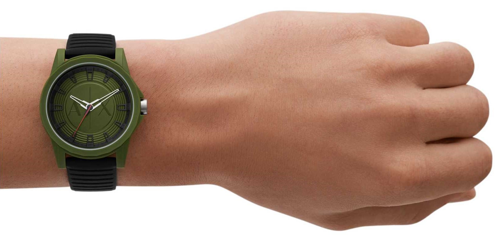 Мужские наручные часы с минеральным стекломМинеральное стеклоМинеральное стекло представляет собой искусственно выращенный минерал кварца. Такое стекло отличается особой устойчивостью к повреждениям и царапинам. Уступает по некоторым качествам сапфировому стеклу. Armani Exchange Outer Banks AX2527, кварцевый механизм с высокой точностью. Класс водозащиты: 30 метров, позволит защитить корпус от случайных брызг или капель дождя. Корпус часов изготовлен из пластика. Метки в виде штрихов. Заводная головка с защитой. Силиконовый ремешок с классической застежкой.