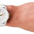 Женские наручные часы Armani Exchange AX7126 представляют собой изящный аксессуар, который идеально подходит для создания стильного образа в повседневной жизни. Модель выполнена с использованием современных материалов, где корпус изготовлен из нейлона и пластика, что делает её лёгкой и практичной в использовании. Защиту циферблата обеспечивает минеральное стеклоМинеральное стеклоМинеральное стекло представляет собой искусственно выращенный минерал кварца. Такое стекло отличается особой устойчивостью к повреждениям и царапинам. Уступает по некоторым качествам сапфировому стеклу., которое устойчиво к царапинам и сохраняет прозрачность на протяжении всего срока службы. Силиконовый ремешок белого цвета не только комфортен в ношении, но и сочетается с любым стилем одежды, а классическая застежка делает процесс надевания удобным и быстрым. Часы обладают водозащитой до 30 метров (3 атмосфер), что позволяет использовать их при контакте с водой во время мытья рук или хождения под дождём. Кварцевый механизм обеспечивает точность хода, делая эти часы надёжным спутником в любой ситуации.