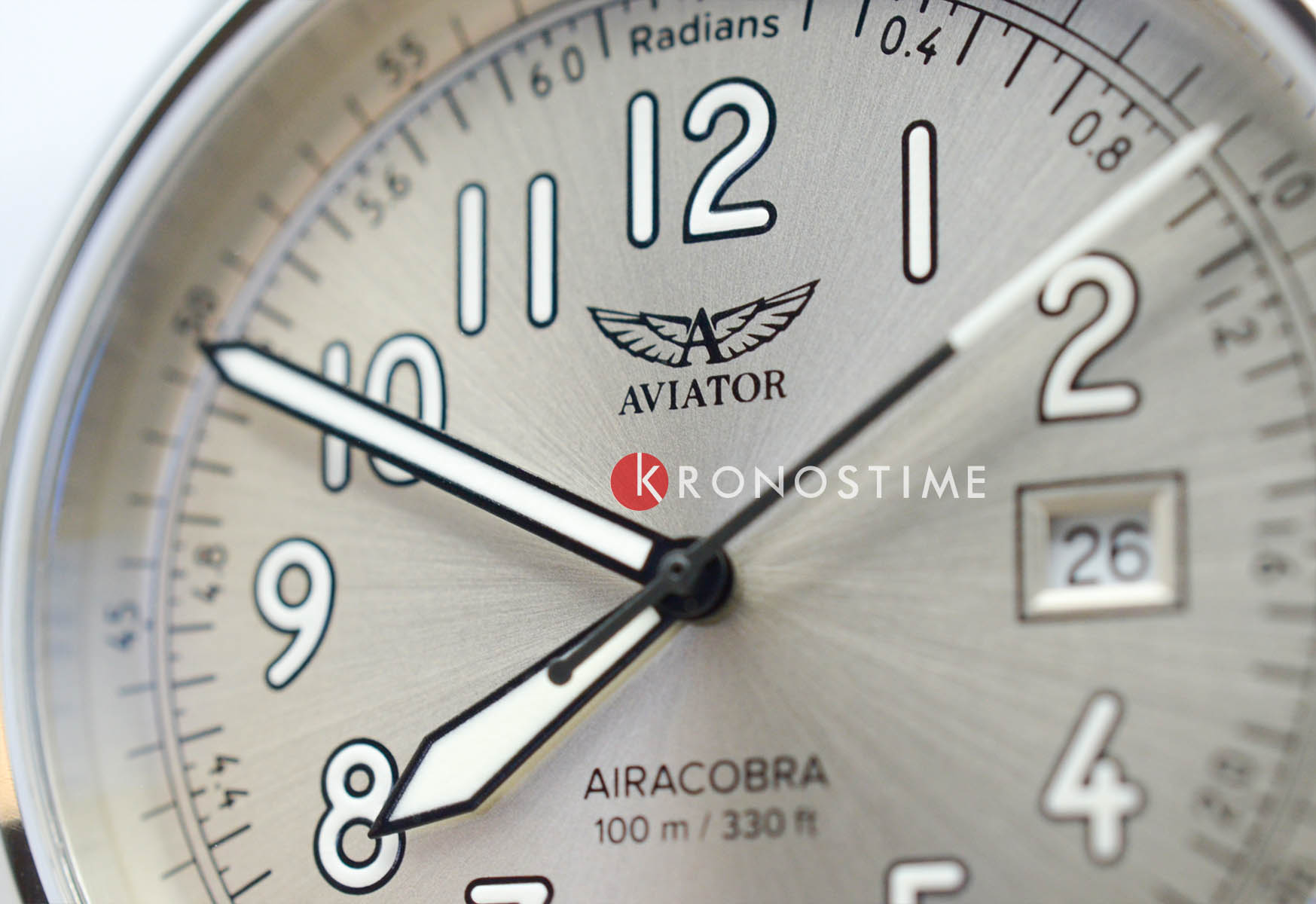 Aviator V.1.38.0.327.4 “Airacobra 43 Type A” — надёжные швейцарские пилотские часы с насыщенным функционалом и строгим авиационным дизайном. Корпус диаметром 42,8 мм выполнен из нержавеющей стали.