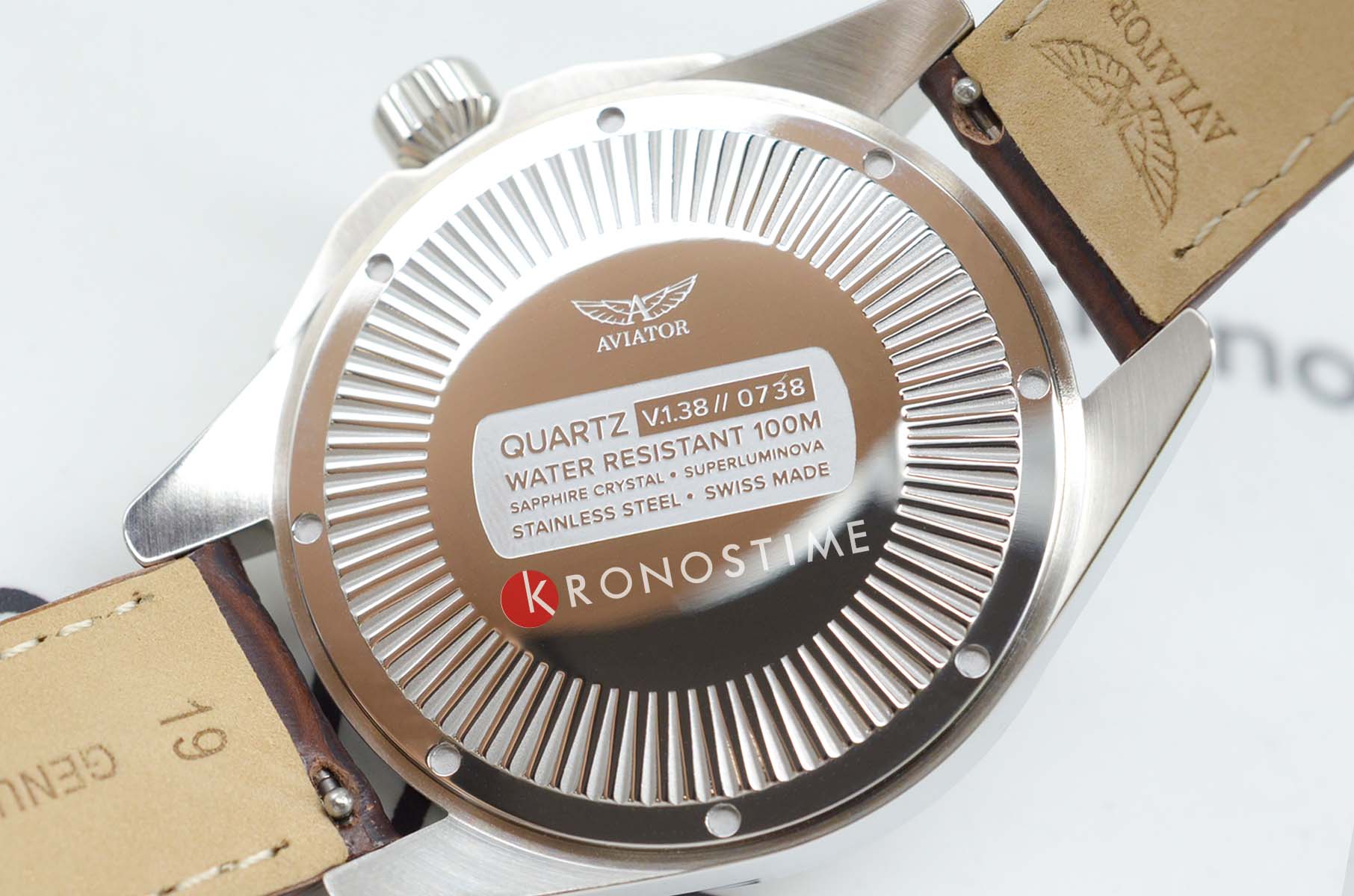 Aviator V.1.38.0.329.4 “Airacobra 43 Type A” — надёжные швейцарские пилотские часы с насыщенным функционалом и строгим авиационным дизайном. Корпус диаметром 42,8 мм выполнен из нержавеющей стали.