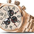 Циферблат оформлен в классическом aviator-стиле: крупные арабские цифры, широкие стрелки и чёткое деление минут позволяют считывать время мгновенно. Стрелки и метки покрыты люминесцентным покрытиемЛюминесцентное покрытиеПозволяет считывать показания времени в темноте. Производители наносят на стрелки, часовые индексы, безель или поверхность циферблата светонакопительный состав, дающий холодное свечение. для отличной читаемости при слабом освещении.