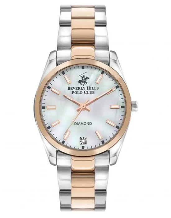 Американские женские часы Beverly Hills Polo Club BP3301X.520 с минеральным стекломМинеральное стеклоМинеральное стекло представляет собой искусственно выращенный минерал кварца. Такое стекло отличается особой устойчивостью к повреждениям и царапинам. Уступает по некоторым качествам сапфировому стеклу., кварцевый механизм с высокой точностью. Класс водозащиты: 30 метров, позволит защитить корпус от случайных брызг или капель дождя. Корпус и браслет часов изготовлены из стали с частичным IP-покрытиемIP-покрытиеМетод ионного напыления. Демонстрирует повышенную устойчивость к истиранию, окислению и химическим веществам. Под воздействием высокого давления и температуры около 1500°C молекулы металла надёжно соединяются с частицами корпуса часов.. Браслет с раскладной застёжкойРаскладная застёжкаТакой тип застёжки используется только на браслетах из металла. Она никогда не раскрывается полностью, происходит разделение на 2 и более частей. Раскладывающая застёжка снизит вероятность потери часов к минимуму..