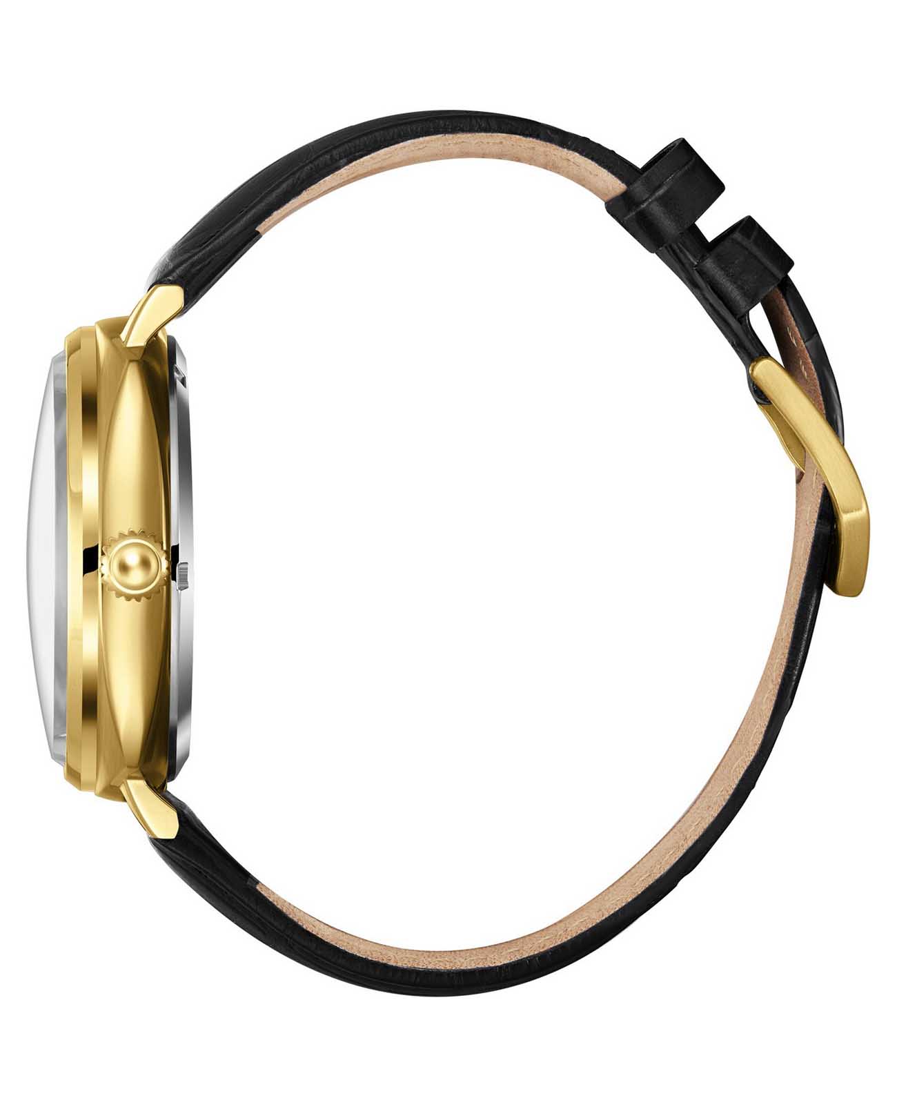 Водозащита до 50 метров (5 ATM) позволяет носить часы во время умывания или приёма душа; однако не рекомендуется использовать их при плавании. Чёрный кожаный ремешок с классической застёжкой обеспечивает комфортное ношение и надёжную фиксацию на запястье.