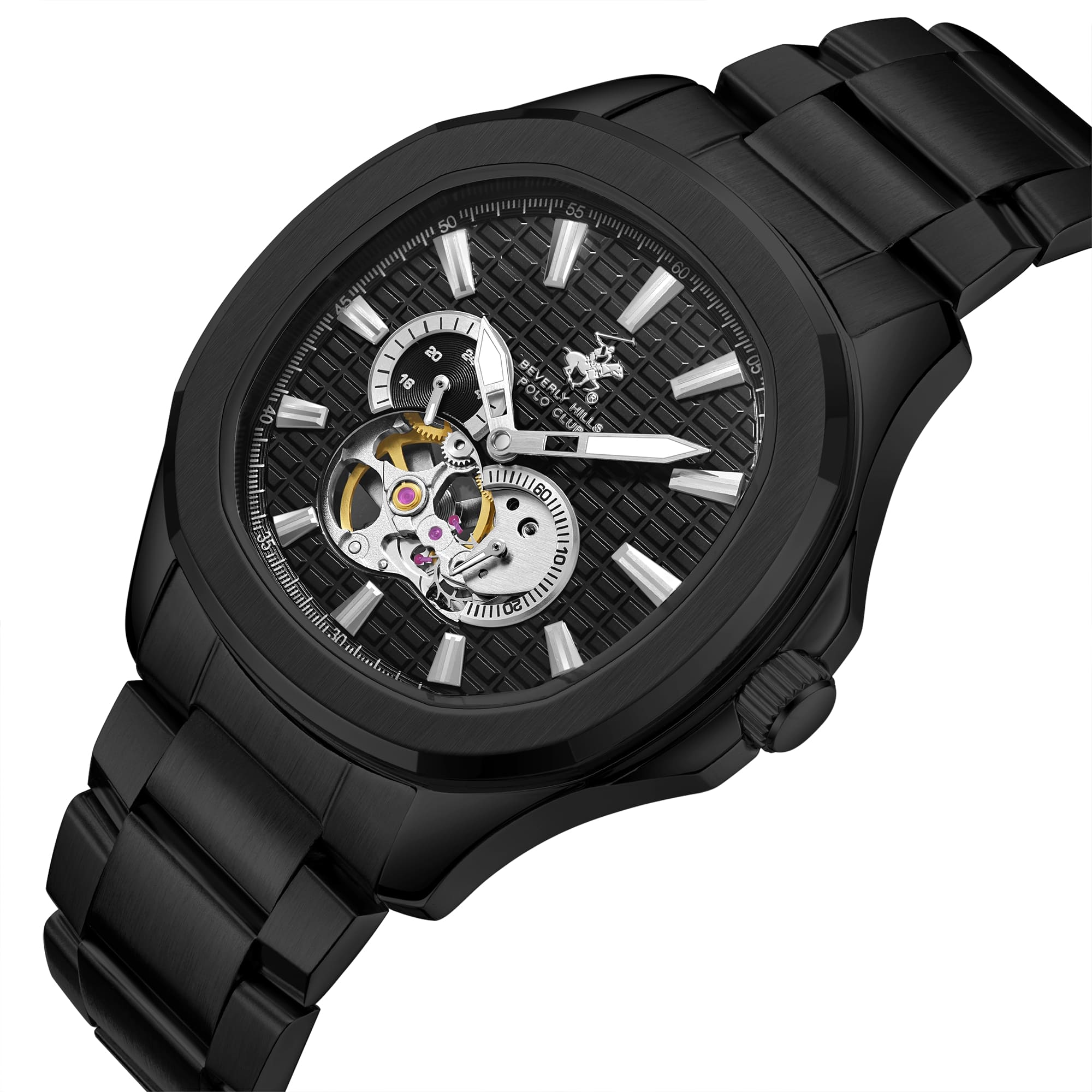 Beverly Hills Polo Club BP3728X.650 – стильные мужские часы, сочетающие современный дизайн и надёжность. Корпус диаметром 41 мм выполнен из нержавеющей стали с PVD-покрытиемPVDУльтратонкое покрытие наносится в технике вакуумного напыления, сочетает в себе нитрид титана особой прочности со слоем золота или оксида хрома. Несёт в себе декоративную или защитную функцию. 316L, обеспечивающей долговечность и устойчивость к коррозии. Циферблат с открытым механизмом (скелетон) придаёт часам уникальный и технически изысканный вид, а его поверхность защищена минеральным стекломМинеральное стеклоМинеральное стекло представляет собой искусственно выращенный минерал кварца. Такое стекло отличается особой устойчивостью к повреждениям и царапинам. Уступает по некоторым качествам сапфировому стеклу., устойчивым к царапинам. Модель оснащена автоматическим механизмом с функцией автоподзавода, что обеспечивает точность хода и удобство использования без необходимости регулярного завода. Дополнительная функция индикации 24 часов повышает практичность часов. Браслет из нержавеющей стали с PVD-покрытиемPVDУльтратонкое покрытие наносится в технике вакуумного напыления, сочетает в себе нитрид титана особой прочности со слоем золота или оксида хрома. Несёт в себе декоративную или защитную функцию. оснащён застёжкой 'бабочка'Застёжка "бабочка"Такой вид застёжки дополняется предохранителями, помогающими избежать случайного раскрытия браслета. Обладают изящным исполнением. , обеспечивающей комфортное ношение и надёжную фиксацию на запястье. Водозащита до 100 метров (10 ATM) позволяет использовать часы при плавании и других водных видах спорта.
