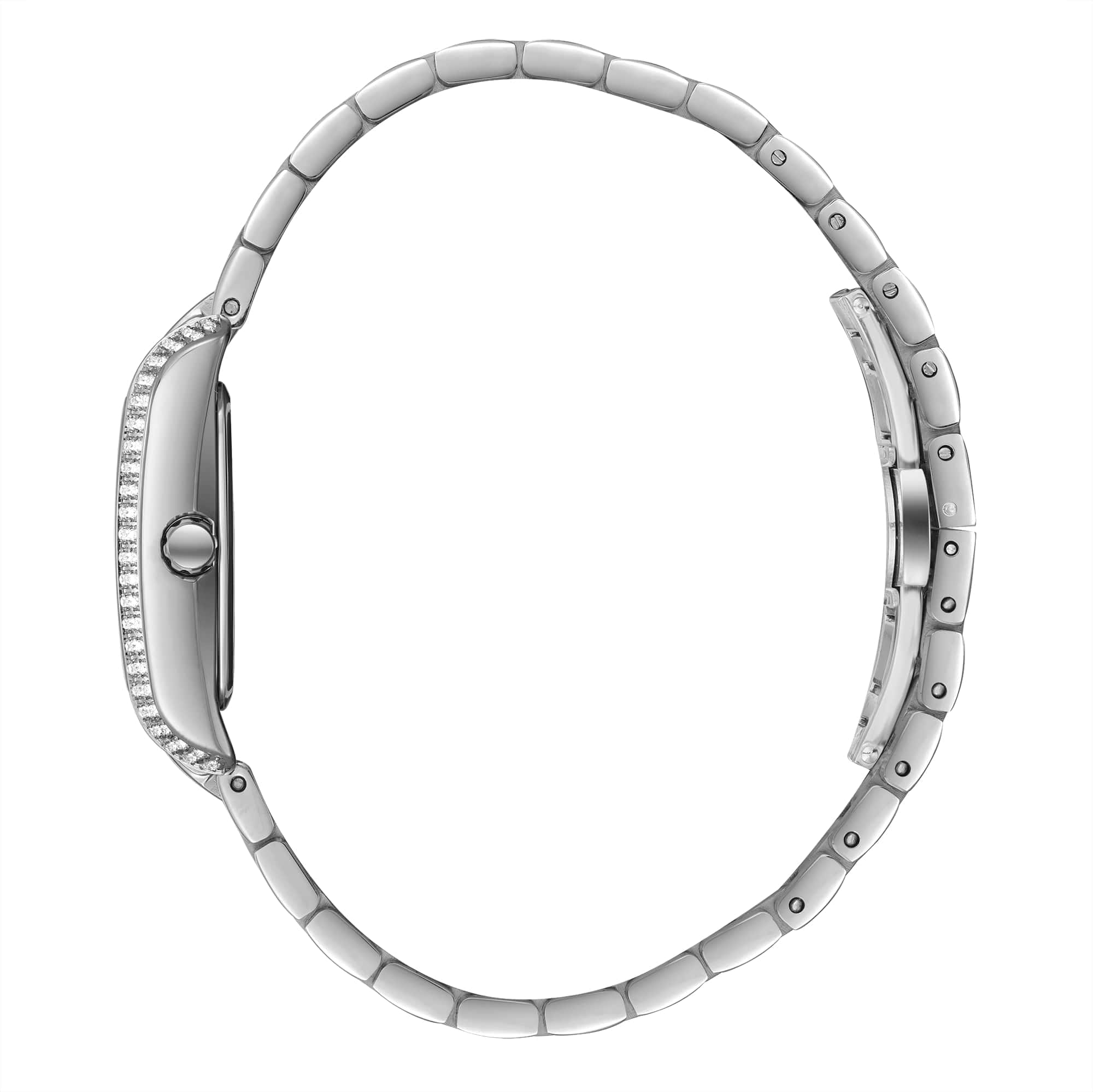 Механизм часов кварцевый, питание от батарейки, что обеспечивает точность хода и минимальное обслуживание. Циферблат защищен минеральным стекломМинеральное стеклоМинеральное стекло представляет собой искусственно выращенный минерал кварца. Такое стекло отличается особой устойчивостью к повреждениям и царапинам. Уступает по некоторым качествам сапфировому стеклу. с сапфировым покрытием, которое устойчиво к появлению царапин и сохраняет чистоту взгляда на протяжении длительного времени. Стальной браслет на застёжке-бабочке с кнопкамиЗастёжка "бабочка"Такой вид застёжки дополняется предохранителями, помогающими избежать случайного раскрытия браслета. Обладают изящным исполнением. . Часы обладают водозащитой до 30 метров, позволит защитить корпус от случайных брызг или капель дождя. Цирконы придают часам неповторимый шарм и изысканность.