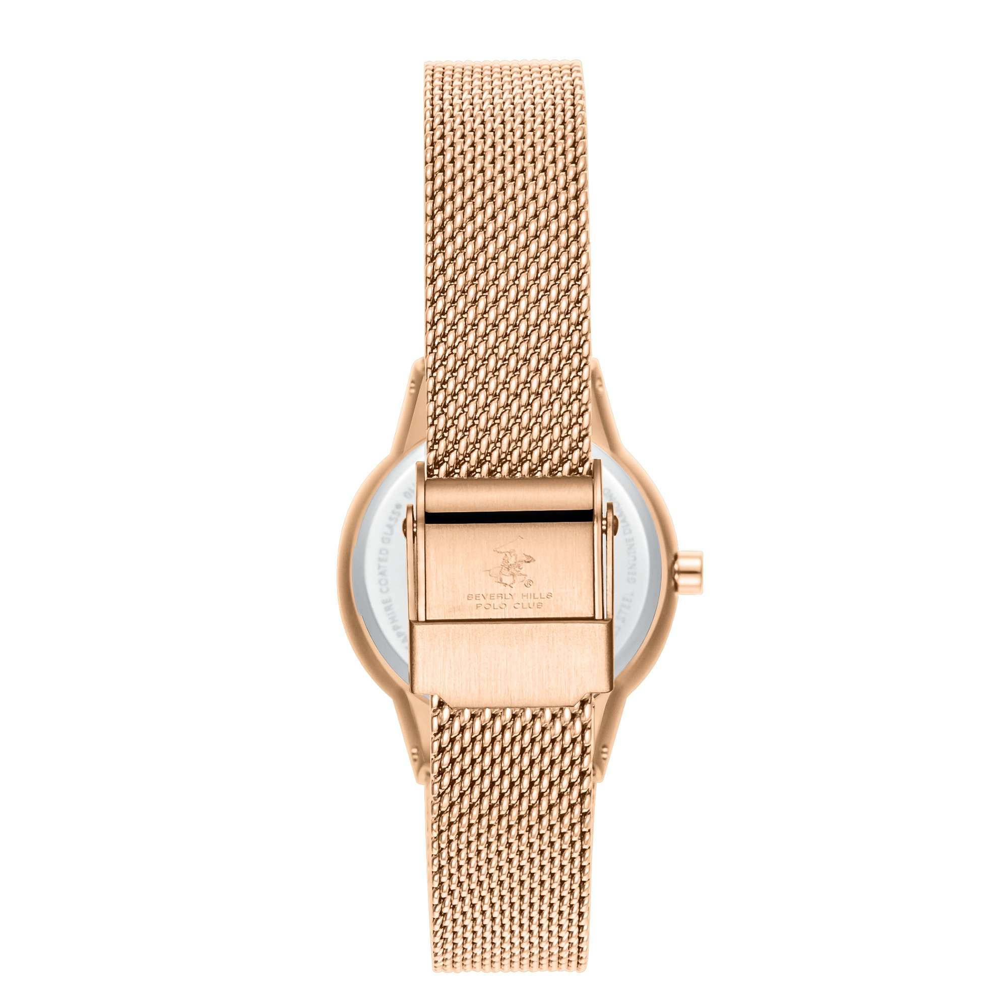 Американские женские часы Beverly Hills Polo Club BP3768X.430 - это стильный женский аксессуар, который сочетает элегантный дизайн и практичность. Корпус выполнен из нержавеющей стали с IP-покрытиемIP-покрытиеМетод ионного напыления. Демонстрирует повышенную устойчивость к истиранию, окислению и химическим веществам. Под воздействием высокого давления и температуры около 1500°C молекулы металла надёжно соединяются с частицами корпуса часов. цвета розового золота, диаметром 28 мм, что обеспечивает долговечность и утончённый внешний вид. Надежное минеральное стеклоМинеральное стеклоМинеральное стекло представляет собой искусственно выращенный минерал кварца. Такое стекло отличается особой устойчивостью к повреждениям и царапинам. Уступает по некоторым качествам сапфировому стеклу. с сапфировым покрытием защищает циферблат от царапин и обеспечивает долговечность. Метки в виде точек инкрустированы синтетическими бриллиантами. Модель оснащена кварцевым механизмом, обеспечивающим высокую точность хода. Стальной браслет миланского плетения на раскладной застёжкеРаскладная застёжкаТакой тип застёжки используется только на браслетах из металла. Она никогда не раскрывается полностью, происходит разделение на 2 и более частей. Раскладывающая застёжка снизит вероятность потери часов к минимуму. обеспечивает комфортное ношение. Водозащита 30 метров позволит защитить корпус от случайных брызг или капель дождя. Эта модель – отличный выбор для тех, кто ищет сочетание стиля, качества и функциональности. Часы станут не только полезным аксессуаром, но и выразительным элементом вашего имиджа.