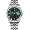 Женские кварцевые часы Beverly Hills Polo Club — это отражение утончённости и изысканного стиля. Корпус диаметром 31 мм выполнен из стали 316L. Циферблат зелёного цвета оформлен штрихами, стрелками и окошком даты в положении 3 часов. Циферблат защищён минеральным стекломМинеральное стеклоМинеральное стекло представляет собой искусственно выращенный минерал кварца. Такое стекло отличается особой устойчивостью к повреждениям и царапинам. Уступает по некоторым качествам сапфировому стеклу. с сапфировым покрытием. Часы оснащены стальным браслетом из стали 316L на застёжке «бабочка» с кнопкамиЗастёжка "бабочка"Такой вид застёжки дополняется предохранителями, помогающими избежать случайного раскрытия браслета. Обладают изящным исполнением. . Водонепроницаемость 30 м позволяет использовать часы в повседневных условиях. Идеальный выбор для тех, кто ценит американское качество и универсальный дизайн.