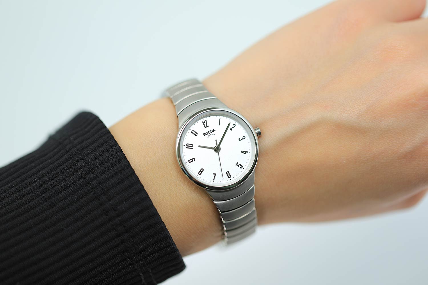 Женские немецкие титановые часы Boccia Titanium 3319-01, кварцевый механизм с высокой точностью. Класс водозащиты: 30 метров, позволит защитить корпус от случайных брызг или капель дождя. Корпус часов изготовлен из стали, цвета.
