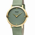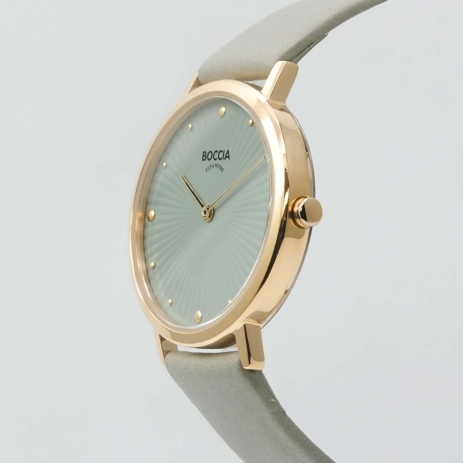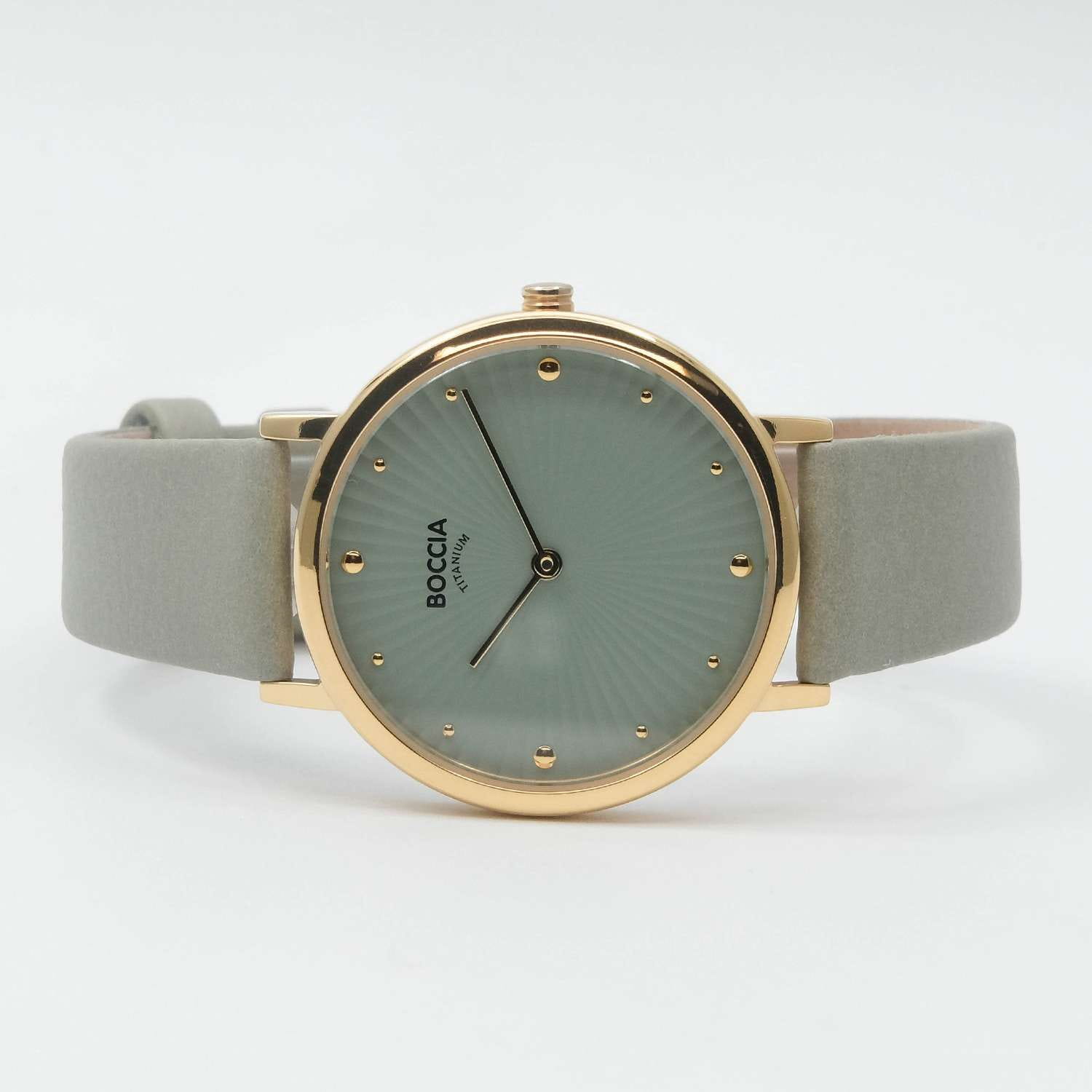 Элегантные женские часы Boccia 3365-04 станут неотъемлемой частью вашего повседневного стиля. Эти часы оборудованы надежным кварцевым механизмом Miyota GL22, обеспечивающим высокую точность и бесперебойную работу. Центральные часовая и минутная стрелки изящно выделяются на стильном оливковом циферблате, создавая гармоничный и современный образ. Корпус часов выполнен из суперлегкого титана, что делает их не только прочными, но и комфортными в ношении. Круглый корпус диаметром 34 мм придаёт часам классический и универсальный вид. Зеленый кожаный ремешок с традиционной застежкой идеально дополняет общий дизайн, добавляя яркий акцент. Прочное минеральное стеклоМинеральное стеклоМинеральное стекло представляет собой искусственно выращенный минерал кварца. Такое стекло отличается особой устойчивостью к повреждениям и царапинам. Уступает по некоторым качествам сапфировому стеклу. защищает циферблат от мелких механических повреждений, обеспечивая долговечность и сохранение первоначального внешнего вида. Водостойкость уровня WR 50 позволяет не беспокоиться о попадании влаги при мытье рук или в дождливую погоду.