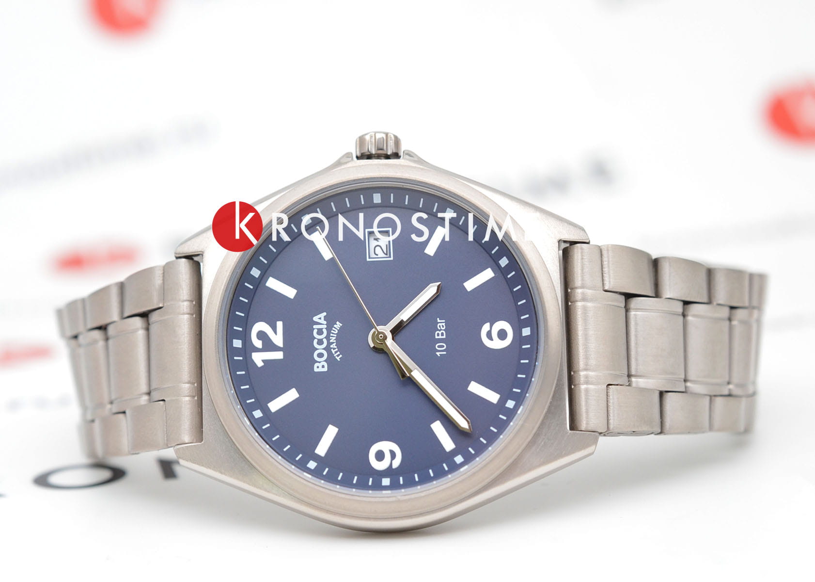 Мужские наручные часы Boccia Titanium 3663-02 с надёжным кварцевым механизмом. Корпус и браслет часов изготовлены из титана. Минеральное стеклоМинеральное стеклоМинеральное стекло представляет собой искусственно выращенный минерал кварца. Такое стекло отличается особой устойчивостью к повреждениям и царапинам. Уступает по некоторым качествам сапфировому стеклу. устойчивое к мелким механическим повреждениям. Окошко даты находится в положении 3 часа. Стрелки и метки с люминесцентным покрытиемЛюминесцентное покрытиеПозволяет считывать показания времени в темноте. Производители наносят на стрелки, часовые индексы, безель или поверхность циферблата светонакопительный состав, дающий холодное свечение.. Класс водозащиты: 100 метров, позволит плавать, нырять и заниматься другими водными видами спорта. Титановый браслет на раскладной застёжкеРаскладная застёжкаТакой тип застёжки используется только на браслетах из металла. Она никогда не раскрывается полностью, происходит разделение на 2 и более частей. Раскладывающая застёжка снизит вероятность потери часов к минимуму..