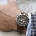 Мужские немецкие титановые часы-хронографХронографФункция позволяет измерять отрезки времени с особой точностью: часы, минуты, секунды. Верным признаком хронографа является наличие на циферблате 3 дополнительных окошек-счётчиков. с секундомеромСекундомерСекундоме́р — прибор, способный измерять интервалы времени с точностью до долей секунды. Boccia Titanium Circle-Oval 3753-04, кварцевый механизм с высокой точностью. Минеральное стеклоМинеральное стеклоМинеральное стекло представляет собой искусственно выращенный минерал кварца. Такое стекло отличается особой устойчивостью к повреждениям и царапинам. Уступает по некоторым качествам сапфировому стеклу. устойчивое к появлению царапин, обладающее высокой прозрачностью. Корпус изготовлен из титана. На цифрблате расположены три дополнительных индикатора и окошко даты. Стрелки с люминесцентным покрытиемЛюминесцентное покрытиеПозволяет считывать показания времени в темноте. Производители наносят на стрелки, часовые индексы, безель или поверхность циферблата светонакопительный состав, дающий холодное свечение.. Класс водозащиты: 50 метров, позволит защитить корпус от случайных брызг или капель дождя. Кожаный ремешок на стандартной застёжке.