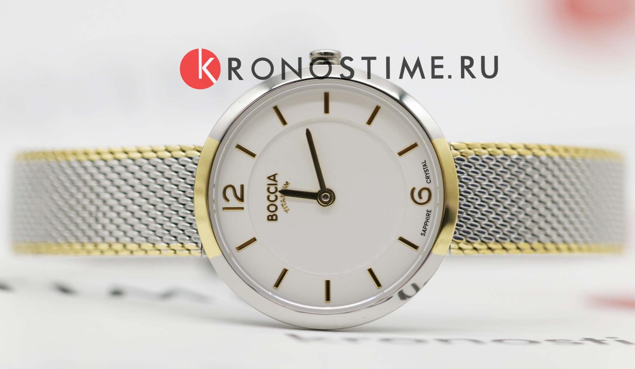 Женские наручные часы Boccia Titanium 3266-06 с надёжным кварцевым механизмом. Корпус часов изготовлен из титана с частичным PVD-покрытиемPVDУльтратонкое покрытие наносится в технике вакуумного напыления, сочетает в себе нитрид титана особой прочности со слоем золота или оксида хрома. Несёт в себе декоративную или защитную функцию.. Сапфировое стеклоСапфировое стеклоПрочный и надёжный материал из кристалла сапфира синтетического происхождения, характеризующийся особой твёрдостью и устойчивостью к царапинам и повреждениям. устойчивое к мелким механическим повреждениям. Класс водозащиты: 30 метров, позволит защитить корпус от случайных брызг или капель дождя. Удобный браслет миланского плетения на раскладном замкеРаскладной замокДанный вариант застежки используется только на часах с металлическим браслетом. Отличительная особенность такого крепления в том, что длина браслета становится универсальной и вы можете самостоятельно отрегулировать нужный вам размер – застежка просто двигается по браслету часов..
