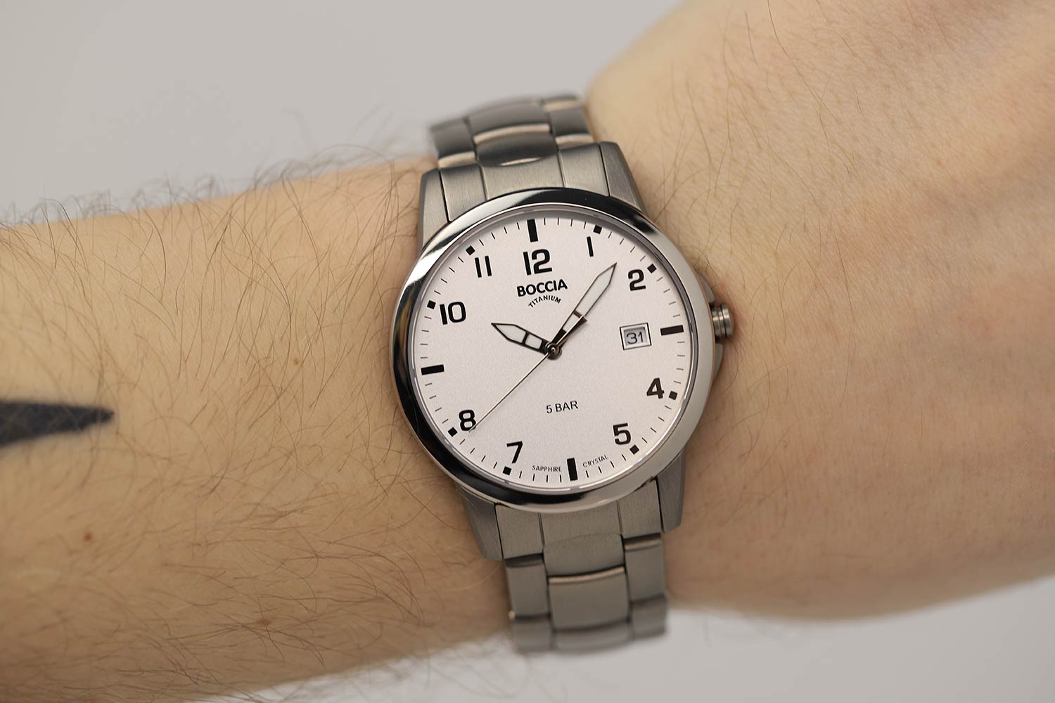 Мужские немецкие титановые часы Boccia Titanium Circle-Oval 3625-03 - это воплощение элегантности и минимализма. Легкий и прочный титановый корпус обеспечивает комфорт при ношении, а лаконичный дизайн циферблата диаметром 36 мм со стрелками подчеркивает изысканный вкус. Сапфировое стеклоСапфировое стеклоПрочный и надёжный материал из кристалла сапфира синтетического происхождения, характеризующийся особой твёрдостью и устойчивостью к царапинам и повреждениям. надежно защищает циферблат от царапин, сохраняя безупречный внешний вид часов на долгие годы. Комфортное ношение обеспечивается благодаря высококачественному браслету из титана, который дополнен раскладной застежкойРаскладная застёжкаТакой тип застёжки используется только на браслетах из металла. Она никогда не раскрывается полностью, происходит разделение на 2 и более частей. Раскладывающая застёжка снизит вероятность потери часов к минимуму. для удобства использования. Стрелки с люминесцентным покрытиемЛюминесцентное покрытиеПозволяет считывать показания времени в темноте. Производители наносят на стрелки, часовые индексы, безель или поверхность циферблата светонакопительный состав, дающий холодное свечение.. Класс водозащиты: 50 метров, позволит защитить корпус от случайных брызг или капель дождя.