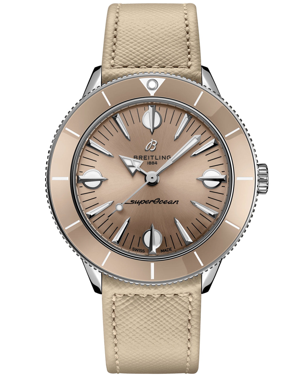 Красочная дань уважения часовой компании Breitling оригинальной модели SuperOcean и воплощение пляжного стиля. В капсульной коллекции Superocean Heritage ’57 Pastel Paradise использованы некоторые элементы дизайна первой модели SuperOcean 1957 года выпуска, такие как вогнутый керамический безель, крупные индексы и часовая стрелка в форме стрелы.