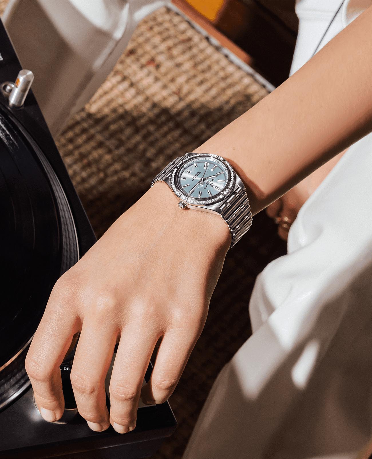 Женские швейцарские часы Breitling Chronomat Automatic 36 G10380591C1G1 с надёжным автоматическим механизмом. Сапфировое стеклоСапфировое стеклоПрочный и надёжный материал из кристалла сапфира синтетического происхождения, характеризующийся особой твёрдостью и устойчивостью к царапинам и повреждениям. устойчивое к мелким механическим повреждениям. Корпус и браслет часов изготовлены из нержавеющей стали. БезельБезельВнешний ободок, закрепляющий стекло. В спортивных часах так называется поворотное кольцо с делениями на циферблате, выполняет роль таймера – замеряет отрезки времени на шкале. Неподвижный безель – элемент декора. Однонаправленно вращающийся безель на дайверских часах позволяет фиксировать моменты погружения и выныривания на поверхность. и циферблат инкрустированы бриллиантами. Стальной браслет на застёжке-бабочке с кнопкамиЗастёжка "бабочка"Такой вид застёжки дополняется предохранителями, помогающими избежать случайного раскрытия браслета. Обладают изящным исполнением. . Стрелки и метки с люминесцентным покрытиемЛюминесцентное покрытиеПозволяет считывать показания времени в темноте. Производители наносят на стрелки, часовые индексы, безель или поверхность циферблата светонакопительный состав, дающий холодное свечение.. Класс водозащиты: 100 метров, позволит плавать, нырять и заниматься другими водными видами спорта.