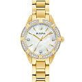 Женские кварцевые часы Bulova Sutton 98R297 – отражающий идеальное сочетание современного дизайна, надёжности и функциональности. Элегантный облик станет превосходным завершением образа, наделив его индивидуальным характером. Корпус из нержавеющей стали с IP-покрытиемIP-покрытиеМетод ионного напыления. Демонстрирует повышенную устойчивость к истиранию, окислению и химическим веществам. Под воздействием высокого давления и температуры около 1500°C молекулы металла надёжно соединяются с частицами корпуса часов. золотистого цвета, диаметром 28 мм идеально сбалансирован и элегантен. Сапфировое стеклоСапфировое стеклоПрочный и надёжный материал из кристалла сапфира синтетического происхождения, характеризующийся особой твёрдостью и устойчивостью к царапинам и повреждениям. защищает циферблат от царапин и устойчивое к механическим повреждениям. БезельБезельВнешний ободок, закрепляющий стекло. В спортивных часах так называется поворотное кольцо с делениями на циферблате, выполняет роль таймера – замеряет отрезки времени на шкале. Неподвижный безель – элемент декора. Однонаправленно вращающийся безель на дайверских часах позволяет фиксировать моменты погружения и выныривания на поверхность. украшен бриллиантами. Стальной браслет с IP-покрытиемIP-покрытиеМетод ионного напыления. Демонстрирует повышенную устойчивость к истиранию, окислению и химическим веществам. Под воздействием высокого давления и температуры около 1500°C молекулы металла надёжно соединяются с частицами корпуса часов. на застёжке-бабочке с кнопкамиЗастёжка "бабочка"Такой вид застёжки дополняется предохранителями, помогающими избежать случайного раскрытия браслета. Обладают изящным исполнением. обеспечивает комфортное ношение. Водозащита 30 метров позволит защитить корпус от случайных брызг или капель дождя. Эта модель – отличный выбор для тех, кто ищет сочетание стиля, качества и функциональности. Часы станут не только полезным аксессуаром, но и выразительным элементом вашего имиджа.