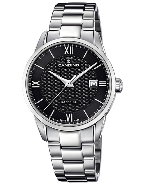 Швейцарские мужские наручные часы Candino Classic C4711/D, кварцевый механизм с высокой точностью. Сапфировое стеклоСапфировое стеклоПрочный и надёжный материал из кристалла сапфира синтетического происхождения, характеризующийся особой твёрдостью и устойчивостью к царапинам и повреждениям. устойчивое к появлению царапин, обладающее высокой прозрачностью. Класс водозащиты: 100 метров, позволит плавать, нырять и заниматься другими водными видами спорта. Раскладная застёжкаРаскладная застёжкаТакой тип застёжки используется только на браслетах из металла. Она никогда не раскрывается полностью, происходит разделение на 2 и более частей. Раскладывающая застёжка снизит вероятность потери часов к минимуму. с фиксатором. Корпус часов изготовлен из стали.