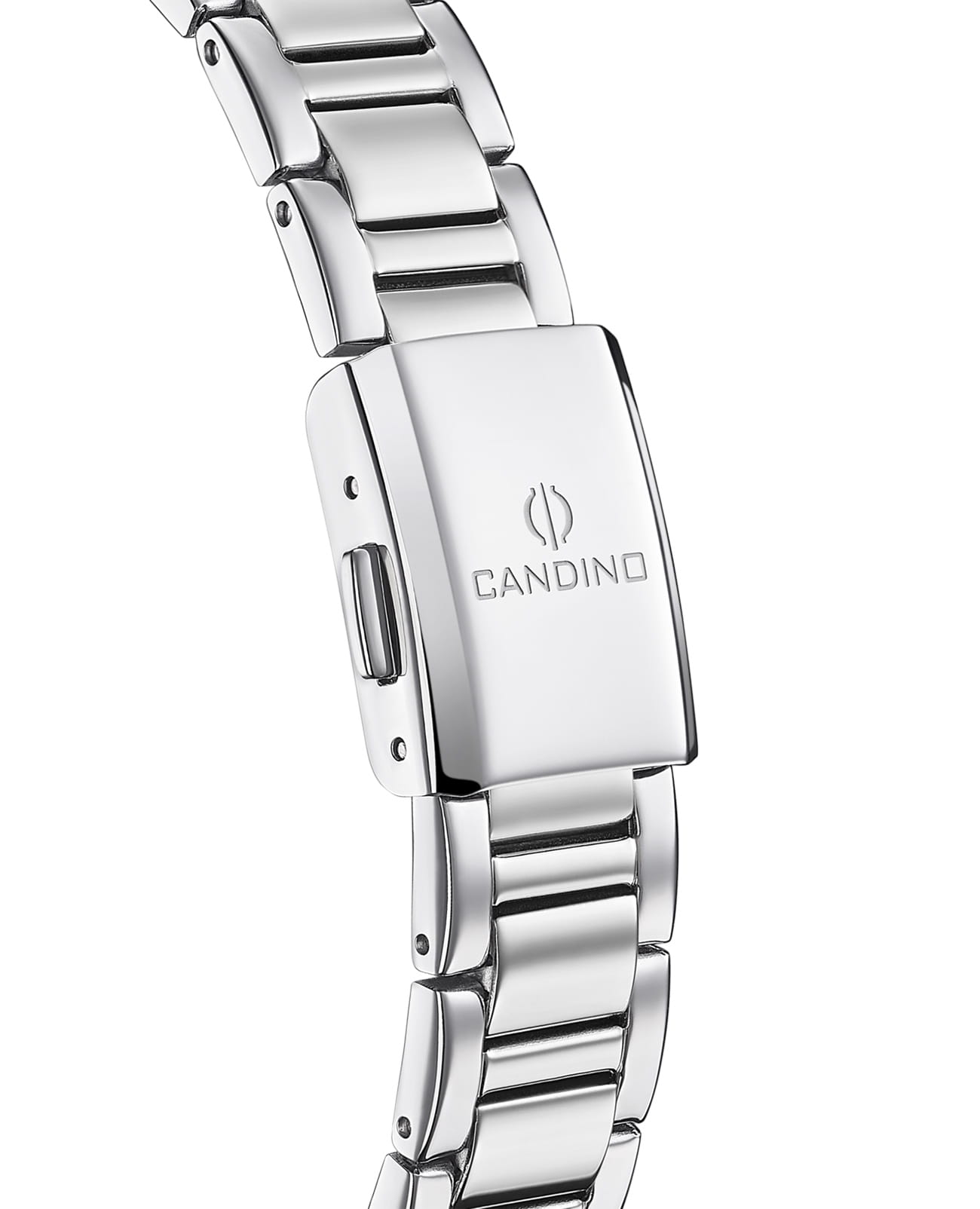 Женские кварцевые часы Candino из коллекции Lady Elegance — это стильный аксессуар, сочетающий швейцарское качество и элегантный дизайн. Корпус диаметром 33 мм и толщиной 8,4 мм выполнен из нержавеющей стали. Циферблат зелёного цвета оформлен индексами и украшен цирконием, придающими изделию изысканность. Окошко даты расположено в положении 3 часов. Циферблат защищён сапфировым стекломСапфировое стеклоПрочный и надёжный материал из кристалла сапфира синтетического происхождения, характеризующийся особой твёрдостью и устойчивостью к царапинам и повреждениям., устойчивым к царапинам. Механизм — кварцевый произведённый в Швейцарии. Часы оснащены стальным браслетом с раскладной застёжкойРаскладная застёжкаТакой тип застёжки используется только на браслетах из металла. Она никогда не раскрывается полностью, происходит разделение на 2 и более частей. Раскладывающая застёжка снизит вероятность потери часов к минимуму.. Водонепроницаемость 50 м позволяет использовать часы в повседневных условиях. Гарантия — 2 года. Идеальный выбор для тех, кто ценит точность, красоту и надёжность.