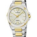 Корпус часов выполнен из стали, что придаёт им прочность и долговечность. Класс водозащиты 50 метров позволяет носить часы в условиях умеренного контакта с водой, защищая их от случайных брызг или капель дождя. Браслет с раскладной застёжкой и частичным PVD-покрытиемPVDУльтратонкое покрытие наносится в технике вакуумного напыления, сочетает в себе нитрид титана особой прочности со слоем золота или оксида хрома. Несёт в себе декоративную или защитную функцию. обеспечивает комфортное и надёжное крепление на запястье. Стрелки и метки с люминесцентным покрытиемЛюминесцентное покрытиеПозволяет считывать показания времени в темноте. Производители наносят на стрелки, часовые индексы, безель или поверхность циферблата светонакопительный состав, дающий холодное свечение. облегчают чтение времени даже в условиях слабого освещения. БезельБезельВнешний ободок, закрепляющий стекло. В спортивных часах так называется поворотное кольцо с делениями на циферблате, выполняет роль таймера – замеряет отрезки времени на шкале. Неподвижный безель – элемент декора. Однонаправленно вращающийся безель на дайверских часах позволяет фиксировать моменты погружения и выныривания на поверхность. с PVD-покрытиемPVDУльтратонкое покрытие наносится в технике вакуумного напыления, сочетает в себе нитрид титана особой прочности со слоем золота или оксида хрома. Несёт в себе декоративную или защитную функцию. добавляет часам дополнительную стойкость и эстетический акцент.