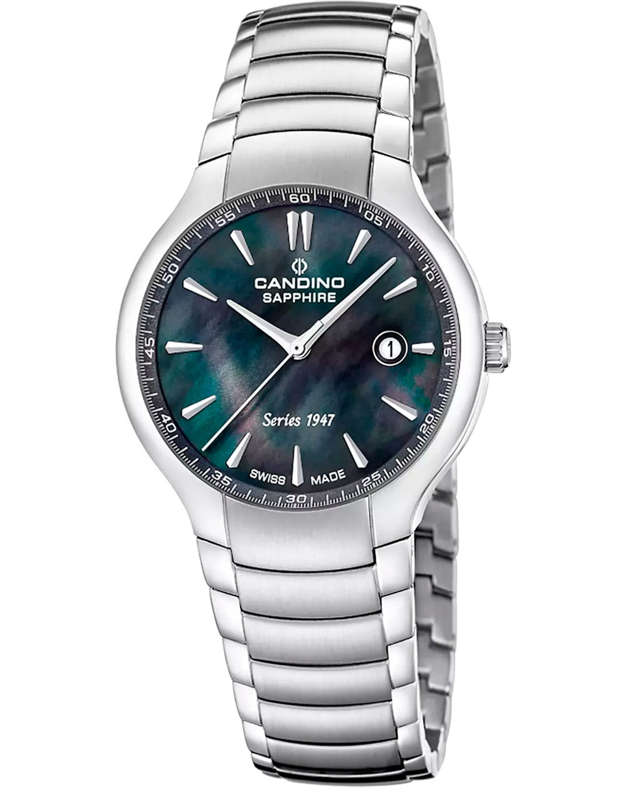 Женские кварцевые часы Candino — это сочетание элегантности и швейцарского качества. Корпус диаметром 34 мм и толщиной 8,6 мм выполнен из нержавеющей стали 316L. Циферблат чёрного цвета оформлен индексами, придающими изделию изысканность. Окошко даты расположено в положении 3 часов. Циферблат защищён сапфировым стекломСапфировое стеклоПрочный и надёжный материал из кристалла сапфира синтетического происхождения, характеризующийся особой твёрдостью и устойчивостью к царапинам и повреждениям., устойчивым к царапинам. Механизм — кварцевый, произведённый в Швейцарии. Часы оснащены стальным браслетом на застёжке «бабочка» с кнопкамиЗастёжка "бабочка"Такой вид застёжки дополняется предохранителями, помогающими избежать случайного раскрытия браслета. Обладают изящным исполнением. . Водонепроницаемость 100 м позволяет использовать часы для плавания и повседневного ношения. Гарантия — 2 года. Идеальный выбор для тех, кто ценит стиль, точность и надёжность.