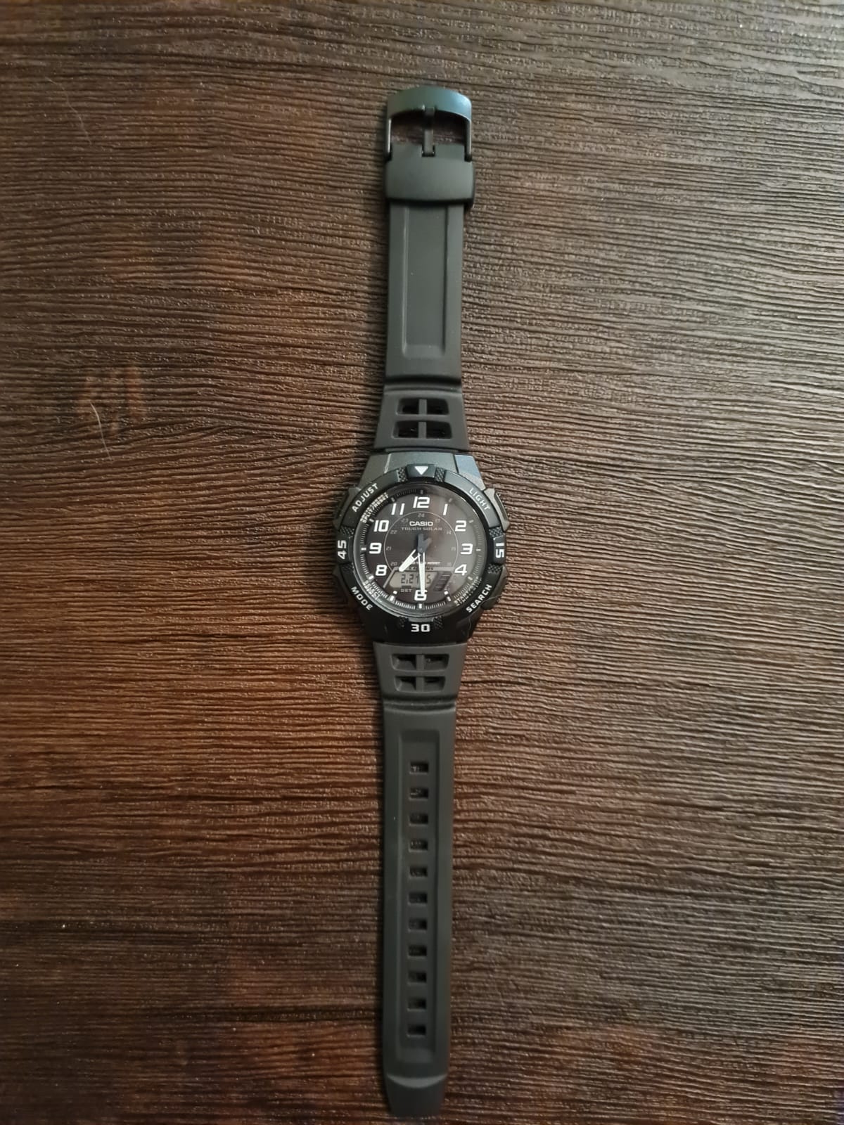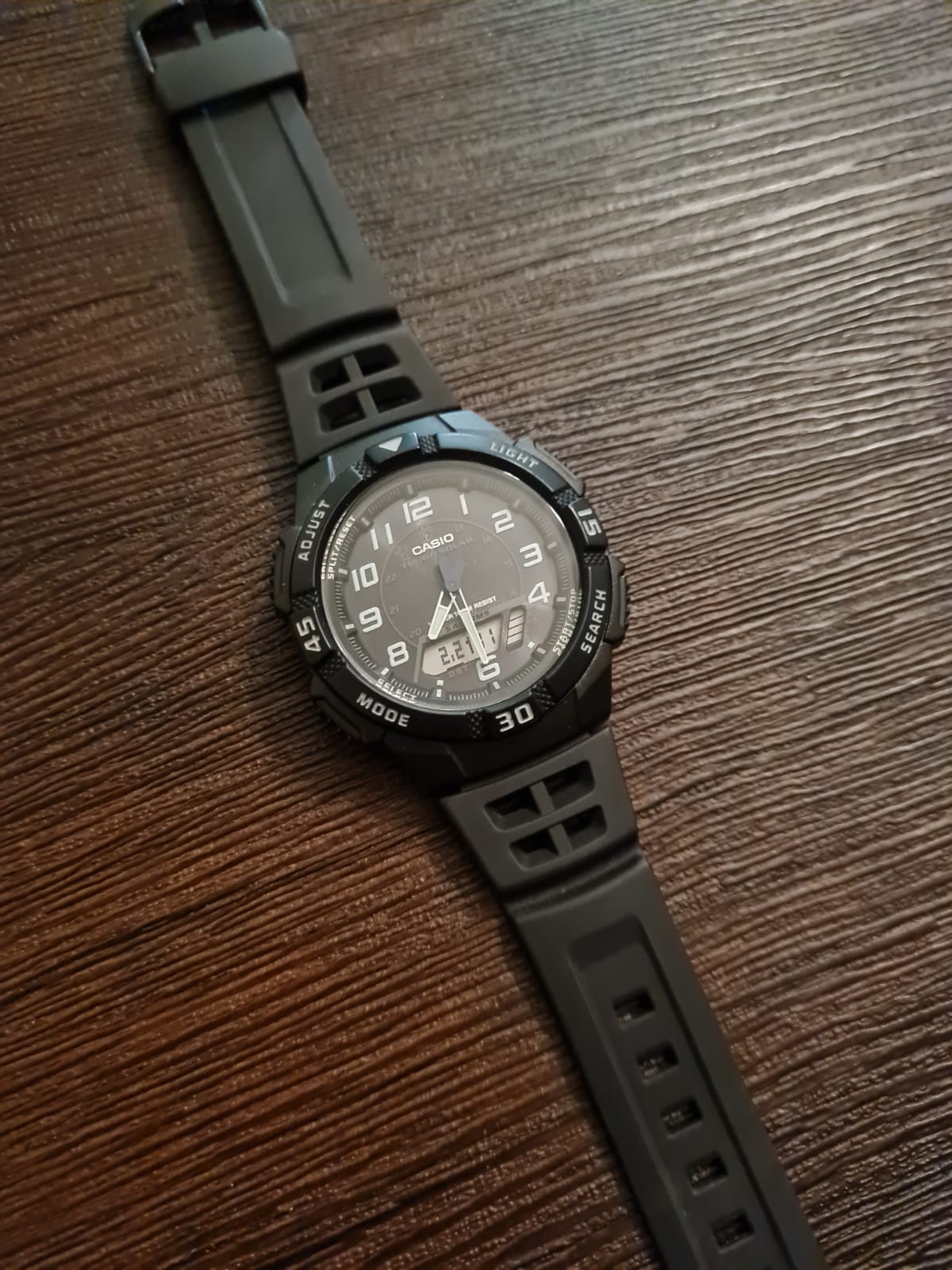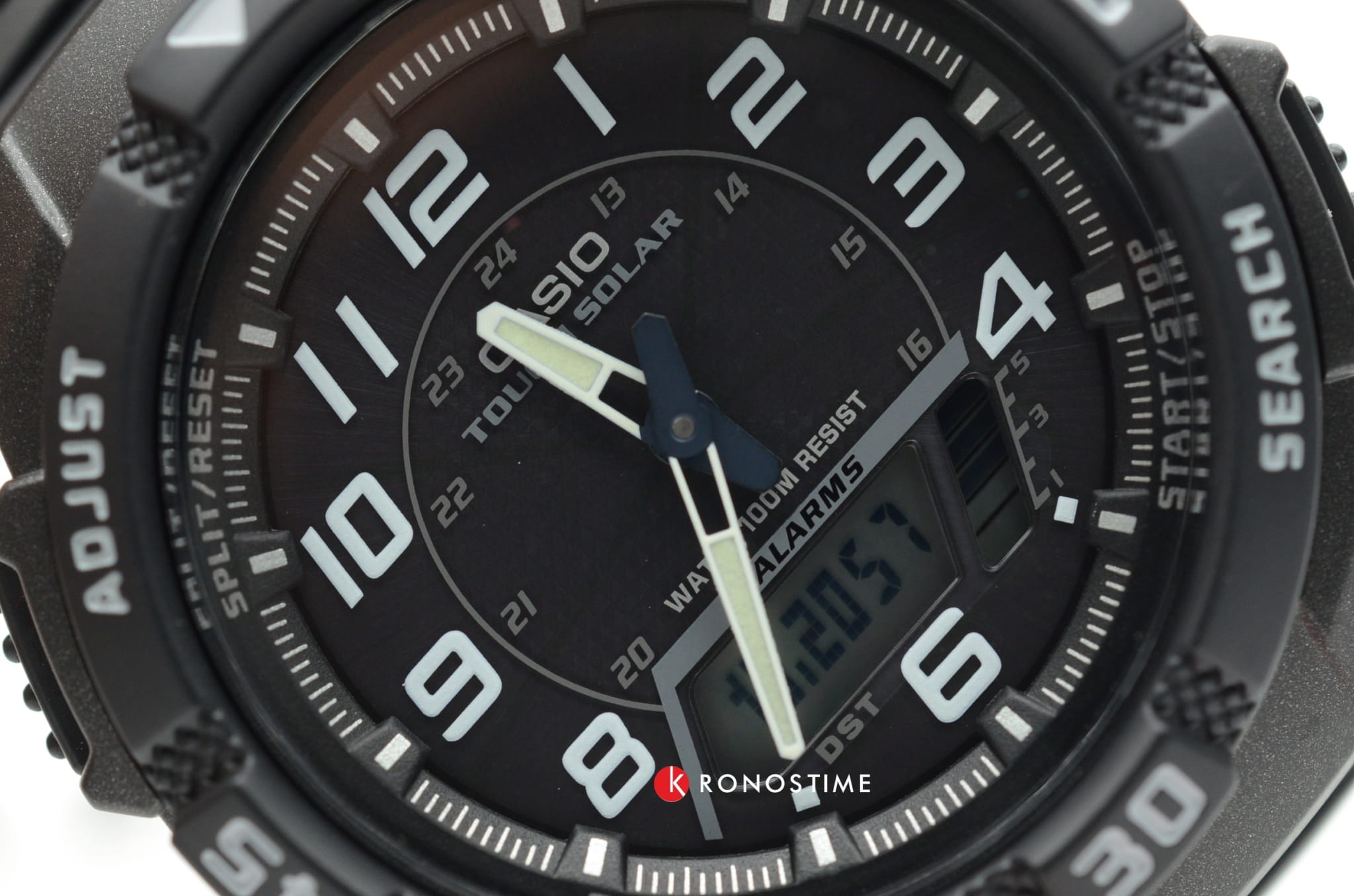 Прочный пластиковый корпус соединен с гибким ремешком из полимерного материала. Светодиодная подсветкаСветодиодная подсветкаСветодиодная или LED-подсветка обеспечивает появление яркого холодного свечения за счёт LED-элементов - маленьких лампочек. Они потребляют минимальное количество энергии, чаще всего можно встретить 1 светодиод, в нижней части циферблата. позволяет видеть циферблат в темное время суток. Высокая точность отсчета - секундомер измеряет прошедшее время с точностью в 1/100 секунды. Есть 2 независимых таймера с обратным отсчетом. Для удобства время отображается в 12-часовом и 24-часовом формате. Не пропустить ни одно важное событие помогут 5 ежедневных будильника. Выпуклое стекло из пластика надежно защищает изделие от повреждений. Высокая водонепроницаемость в 10 Бар идеально подходит для плавания. Кварцевый механизм. Источником питания для часов служит солнечная батарейка, которая работает от преобразованного в электроэнергию света.