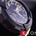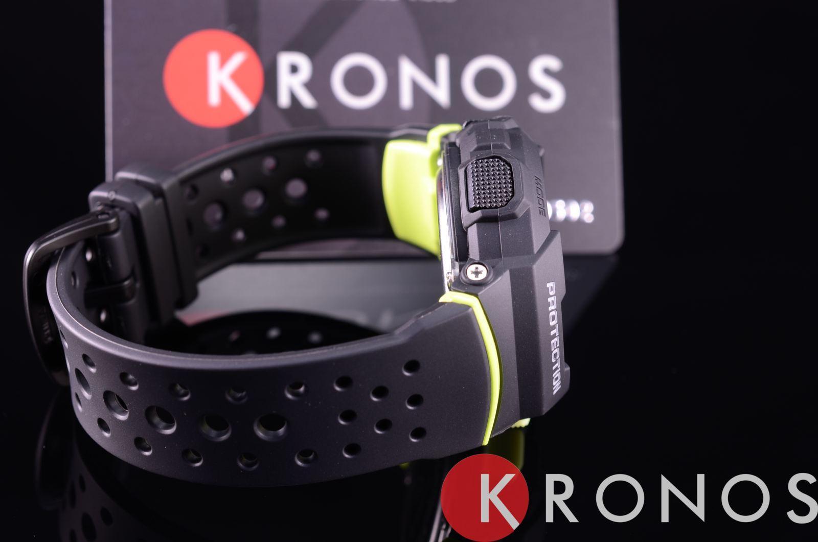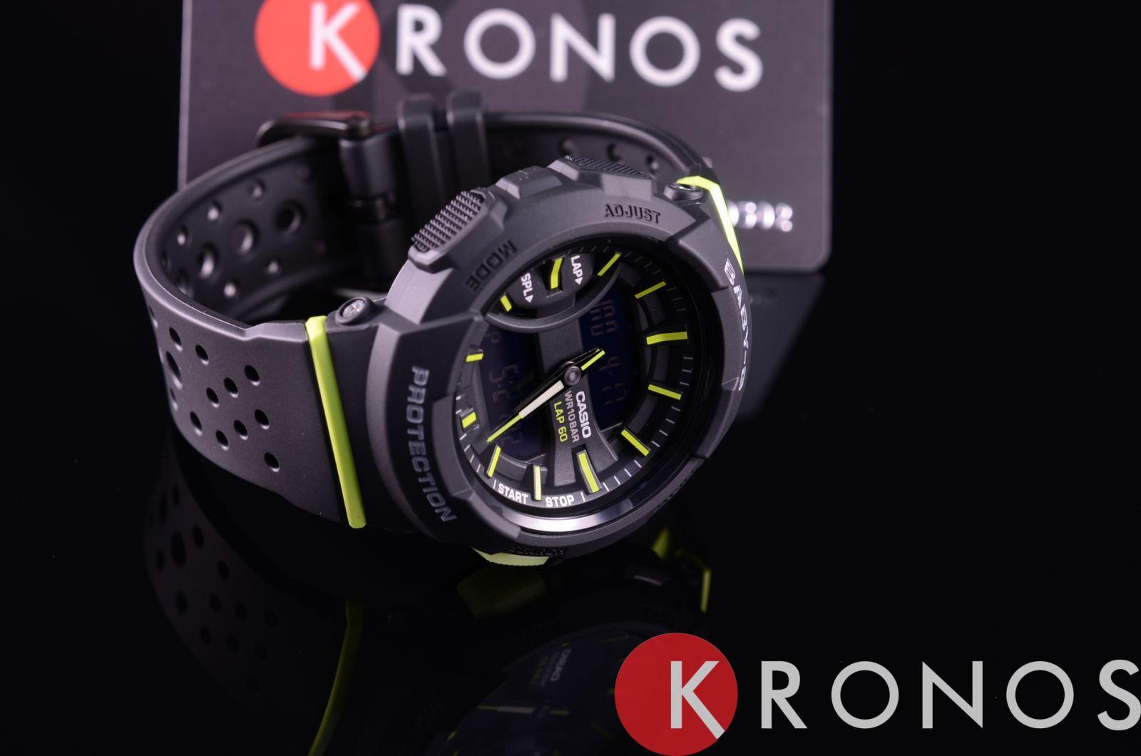 Модель в чёрном исполнении наделена зелёными элементами дизайна. Это полезный аксессуар для любительниц бега, благодаря которому можно в разы повысить эффективность тренировок. Функция Lap Memory 60™ позволяет фиксировать и хранить информацию о дате пробежек, показатели времени круга. Память рассчитана на 60 этапов. Японский кварцевый механизм. Батарейка с 3-летним сроком службы. Минеральное стекло. Полимерный ударопрочный корпусУдаропрочный корпусМеханизм заключён в корпус, выполненный из современных материалов, устойчивых к ударам, механическим повреждениям и падению с высоты: инновационный пластик, карбон, нержавеющая сталь, титан.. Циферблат со светодиодной подсветкойСветодиодная подсветкаСветодиодная или LED-подсветка обеспечивает появление яркого холодного свечения за счёт LED-элементов - маленьких лампочек. Они потребляют минимальное количество энергии, чаще всего можно встретить 1 светодиод, в нижней части циферблата.. Будильник с функцией «подремать». ХронографХронографФункция позволяет измерять отрезки времени с особой точностью: часы, минуты, секунды. Верным признаком хронографа является наличие на циферблате 3 дополнительных окошек-счётчиков., секундомер, таймер, календарь. Габариты: 46,4 x 42,6 x 15,3 мм.