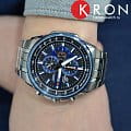 Массивная модель выполнена в автомобильной стилистике, благодаря внушительному ударопрочному корпусуУдаропрочный корпусМеханизм заключён в корпус, выполненный из современных материалов, устойчивых к ударам, механическим повреждениям и падению с высоты: инновационный пластик, карбон, нержавеющая сталь, титан. она отлично смотрится на широком мужском запястье. Чёрно-серебристая расцветка с голубыми деталями всегда останется актуальной. Японский высокоточный кварцевый калибр. Продолжительный срок службы батарейки - 5 лет. Электролюминесцентная подсветкаЭлектролюминесцентная подсветкаЭлектролюминесцентная панель устанавливается под ЖК-экраном часов, при нажатии кнопки электричество преобразуется в свет за счёт подачи напряжения на атомы фосфора, такой тип подсветки позволяет освещать весь циферблат.. Минеральное стекло. Водостойкость до 10 бар. БезельБезельВнешний ободок, закрепляющий стекло. В спортивных часах так называется поворотное кольцо с делениями на циферблате, выполняет роль таймера – замеряет отрезки времени на шкале. Неподвижный безель – элемент декора. Однонаправленно вращающийся безель на дайверских часах позволяет фиксировать моменты погружения и выныривания на поверхность. с IP-покрытиемIP-покрытиеМетод ионного напыления. Демонстрирует повышенную устойчивость к истиранию, окислению и химическим веществам. Под воздействием высокого давления и температуры около 1500°C молекулы металла надёжно соединяются с частицами корпуса часов.. Нержавеющая сталь 316L. Апертура даты, хронографХронографФункция позволяет измерять отрезки времени с особой точностью: часы, минуты, секунды. Верным признаком хронографа является наличие на циферблате 3 дополнительных окошек-счётчиков., секундомер, тахиметрТахиметрРазмеченная шкала, располагается на ободке или безеле часов. Тахиметр позволяет рассчитать скорость на определённом участке пути, расстояние измеряется в километрах или милях.. Габариты: 56,9 x 50,3 x 12,9 мм.