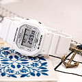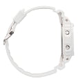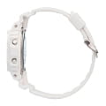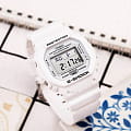 Модель представлена в белоснежном матовом исполнении. Аксессуар выдержан в некой динамике и спортивном накале, стильная модель грамотно завершит образ. Наручные часы с инверсионным дисплеем имеют базовый функционал: таймер с автоповтором, секундомер, будильник, хронографХронографФункция позволяет измерять отрезки времени с особой точностью: часы, минуты, секунды. Верным признаком хронографа является наличие на циферблате 3 дополнительных окошек-счётчиков., автоматический календарь до 2099 года. Батарейка рассчитана на 2 года работы. Устойчивость к падению с высоты и ударам. Минеральное стекло. Электролюминесцентная подсветкаЭлектролюминесцентная подсветкаЭлектролюминесцентная панель устанавливается под ЖК-экраном часов, при нажатии кнопки электричество преобразуется в свет за счёт подачи напряжения на атомы фосфора, такой тип подсветки позволяет освещать весь циферблат. циферблата. Водостойкость до 20 бар. 12/24-часовое отображение времени. Габариты: 48,9 x 42,8 x 13,4 мм.