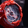 Casio GA-110CB-1A стильные мужские японские наручные часы. Корпус и браслет выполнены из полимерного пластика, вес часов всего 72 грамма. Строгость черного браслета разбавляется ярко-красными корпусом часов. Минеральное стекло, устойчивое к появлению царапин. Часы GA-110CB-1A снабжены множеством дополнительных функций - секундомер, таймер обратного отсчета, календарь, полностью автоматическая подсветка с автоматической регулируемой автоматизацией. Ежечасный сигнал, повтор сигнала будильника, мировое время. Водонепроницаемость часов до 200 метров (возможны занятия дайвингом). Ударопрочные и магнитоустойчивые.