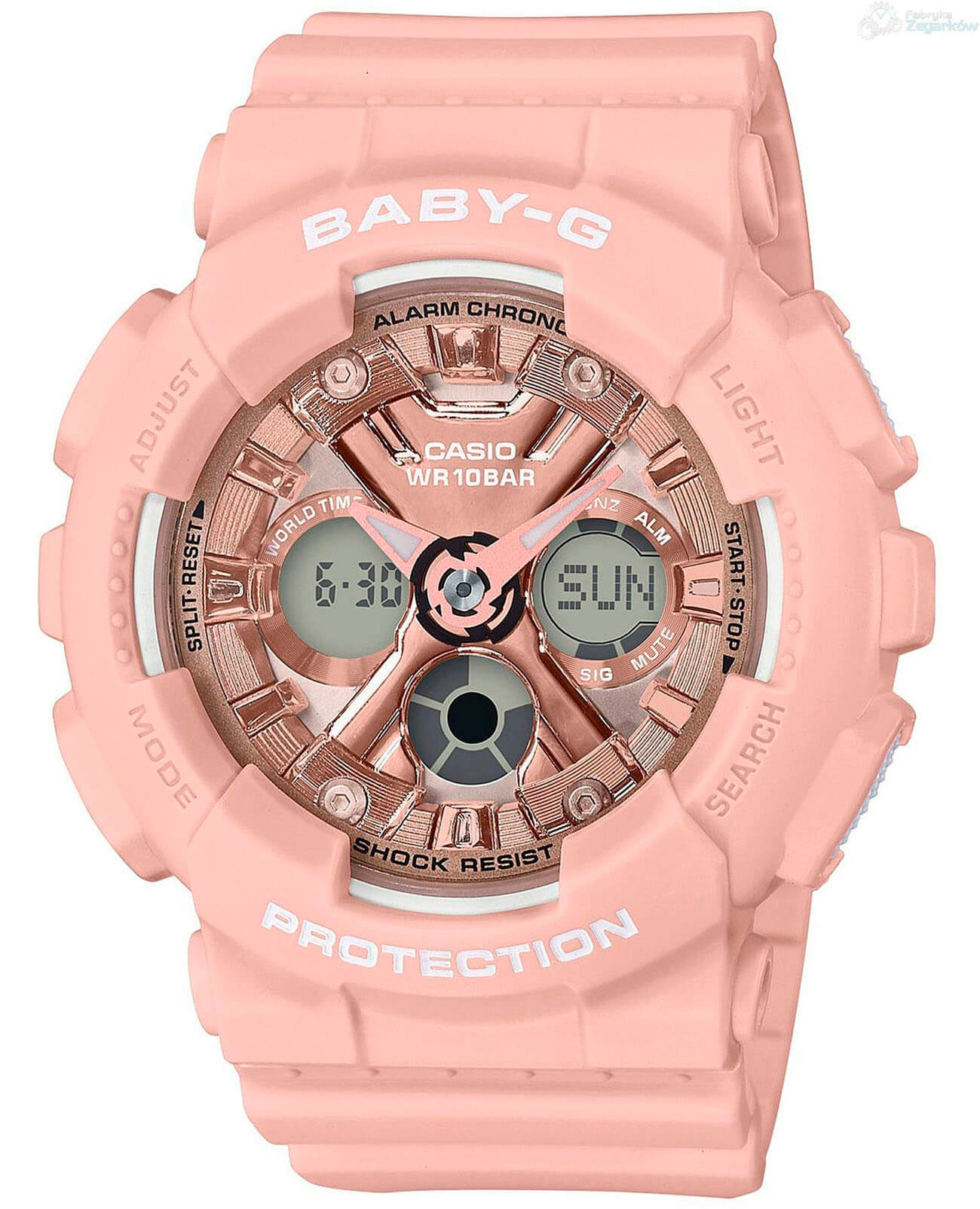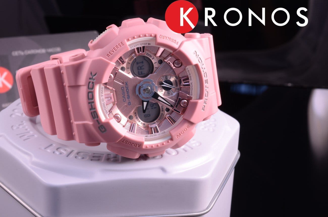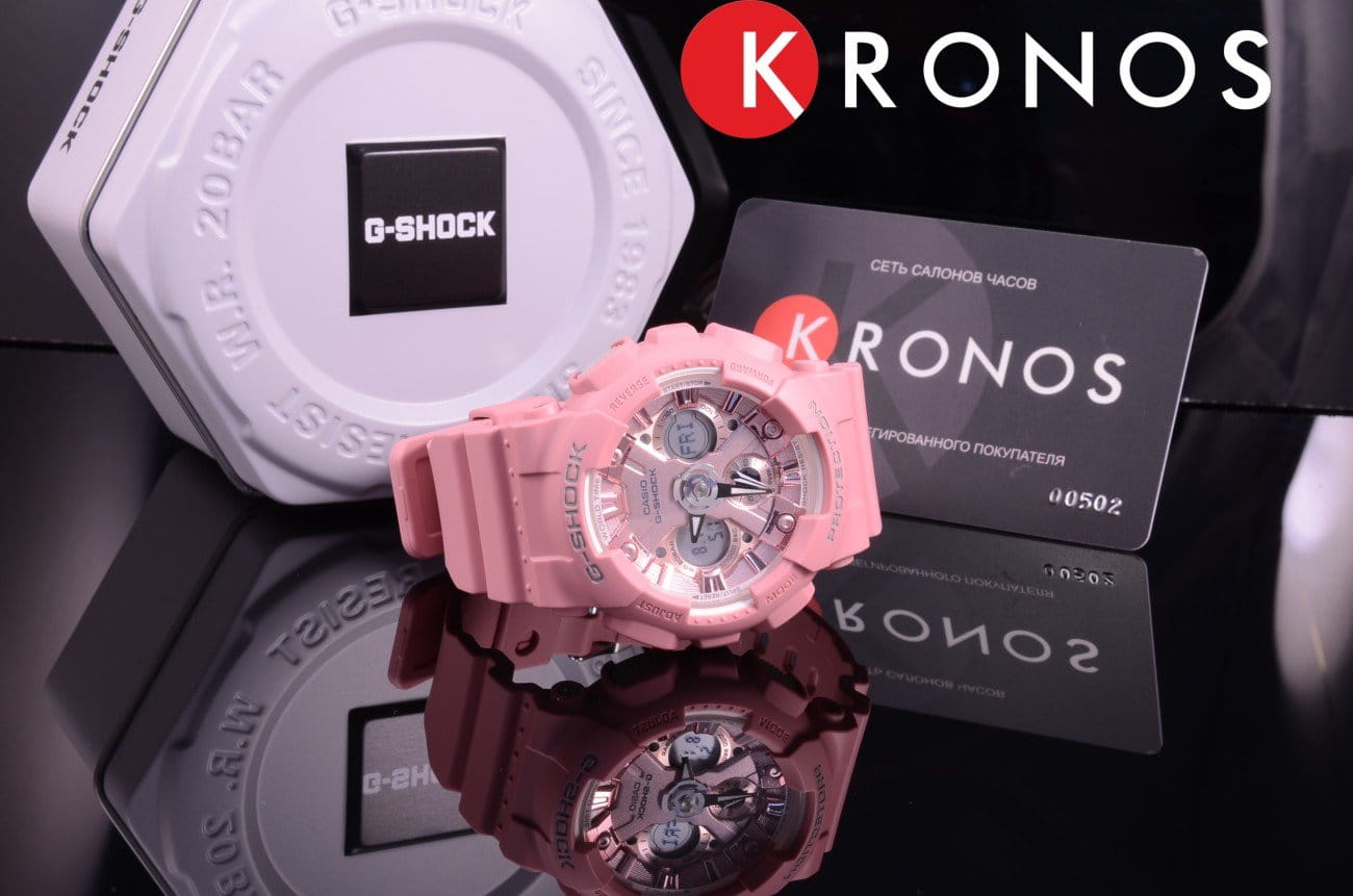 Японские женские часы GMA-S120DP-4AER из коллекции G-Shock представлены в спортивном облачении, но их пастельно-ягодный оттенок позволяет продемонстрировать изысканную натуру.