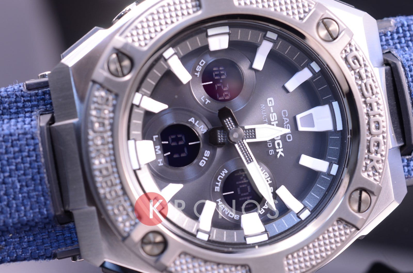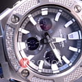 Брендовая модель серии G-Steel представлена в оригинальном исполнении, дизайнеры акцентировали внимание на безелеБезельВнешний ободок, закрепляющий стекло. В спортивных часах так называется поворотное кольцо с делениями на циферблате, выполняет роль таймера – замеряет отрезки времени на шкале. Неподвижный безель – элемент декора. Однонаправленно вращающийся безель на дайверских часах позволяет фиксировать моменты погружения и выныривания на поверхность. и ремешке, сделанных в общем стиле. Безель с IP-покрытиемIP-покрытиеМетод ионного напыления. Демонстрирует повышенную устойчивость к истиранию, окислению и химическим веществам. Под воздействием высокого давления и температуры около 1500°C молекулы металла надёжно соединяются с частицами корпуса часов. имеет гильошированную фактуру, внешний вид которого напоминает поверхность нейлонового ремешка Cordura на кожаной основе с водоотталкивающей пропиткой и защитным полиуретановым слоем. Это часы на солнечной батарее , позволяющие забыть о необходимости завода. Люминесцентная подсветкаЛюминесцентное покрытиеПозволяет считывать показания времени в темноте. Производители наносят на стрелки, часовые индексы, безель или поверхность циферблата светонакопительный состав, дающий холодное свечение. стрелок, яркая светодиодная подсветкаСветодиодная подсветкаСветодиодная или LED-подсветка обеспечивает появление яркого холодного свечения за счёт LED-элементов - маленьких лампочек. Они потребляют минимальное количество энергии, чаще всего можно встретить 1 светодиод, в нижней части циферблата. дисплея. Ударопрочный корпусУдаропрочный корпусМеханизм заключён в корпус, выполненный из современных материалов, устойчивых к ударам, механическим повреждениям и падению с высоты: инновационный пластик, карбон, нержавеющая сталь, титан. из пластика и нержавеющей стали 316L. Водостойкость 20 бар. Таймер, секундомер, будильник, мировое времяМировое время Полезное часовое усложнение, отображающее время в основных городах и известных областях по всему миру, оно связано с часовыми поясами, удобно для путешественников и бизнесменов. , автоматический календарь, приём радиосигнала для корректировки времени, хронографХронографФункция позволяет измерять отрезки времени с особой точностью: часы, минуты, секунды. Верным признаком хронографа является наличие на циферблате 3 дополнительных окошек-счётчиков.. Габариты: 55,9 x 49,3 x 15,3 мм.