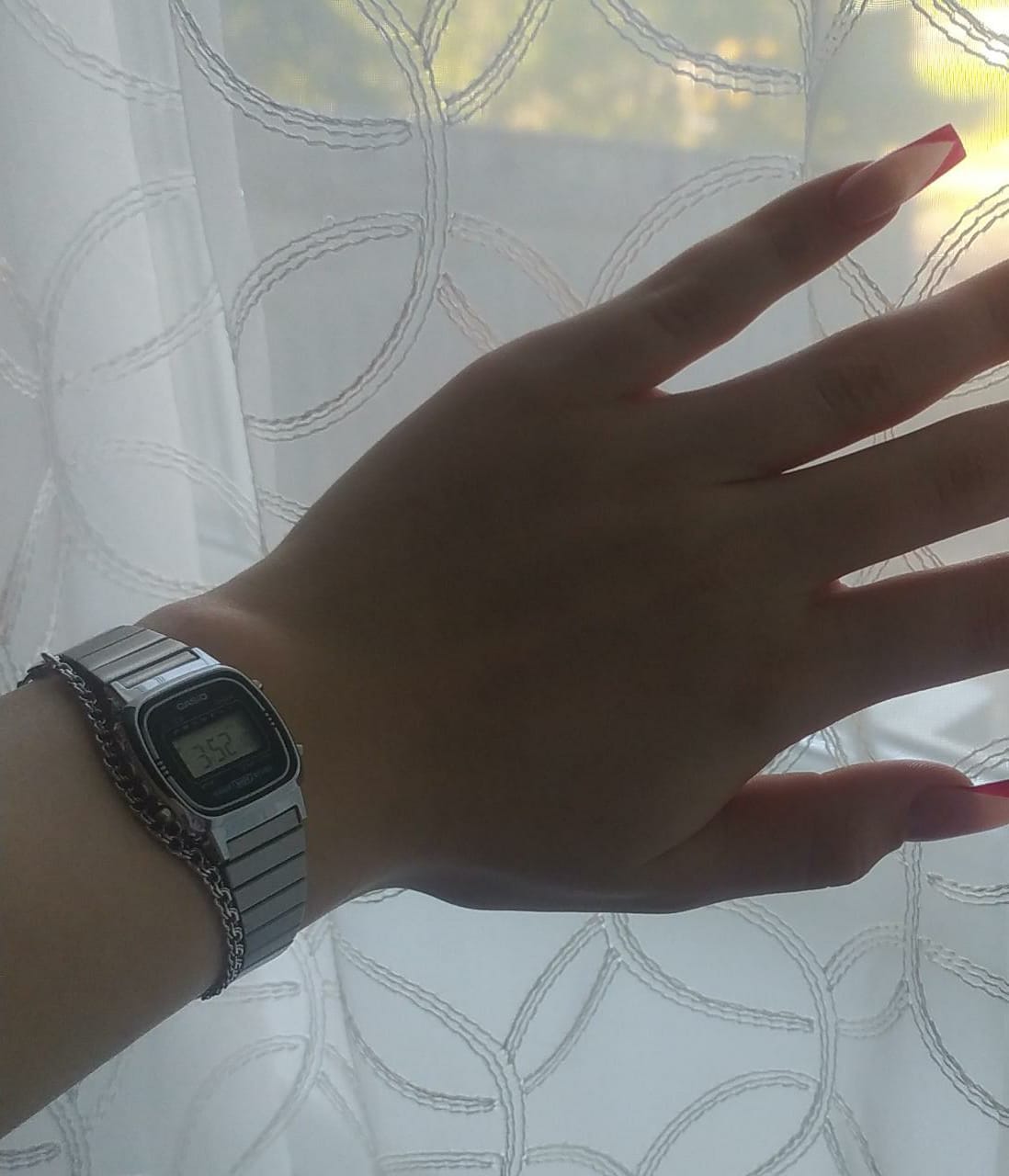 Регулируемая застёжка, будильник и календарь, есть небольшая водозащита (можно мыть руки).