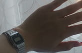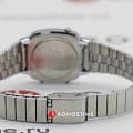 Компактный аксессуар с чёрной окантовкой циферблата имеет корпус из полимерного материала, защищающего японский кварцевый механизм. Он работает от батарейки, рассчитанной на 2 года. Стальной браслет дополнен регулируемым креплением для максимального комфорта носителя. Функции: календарь, секундомер, будильник, таймер.