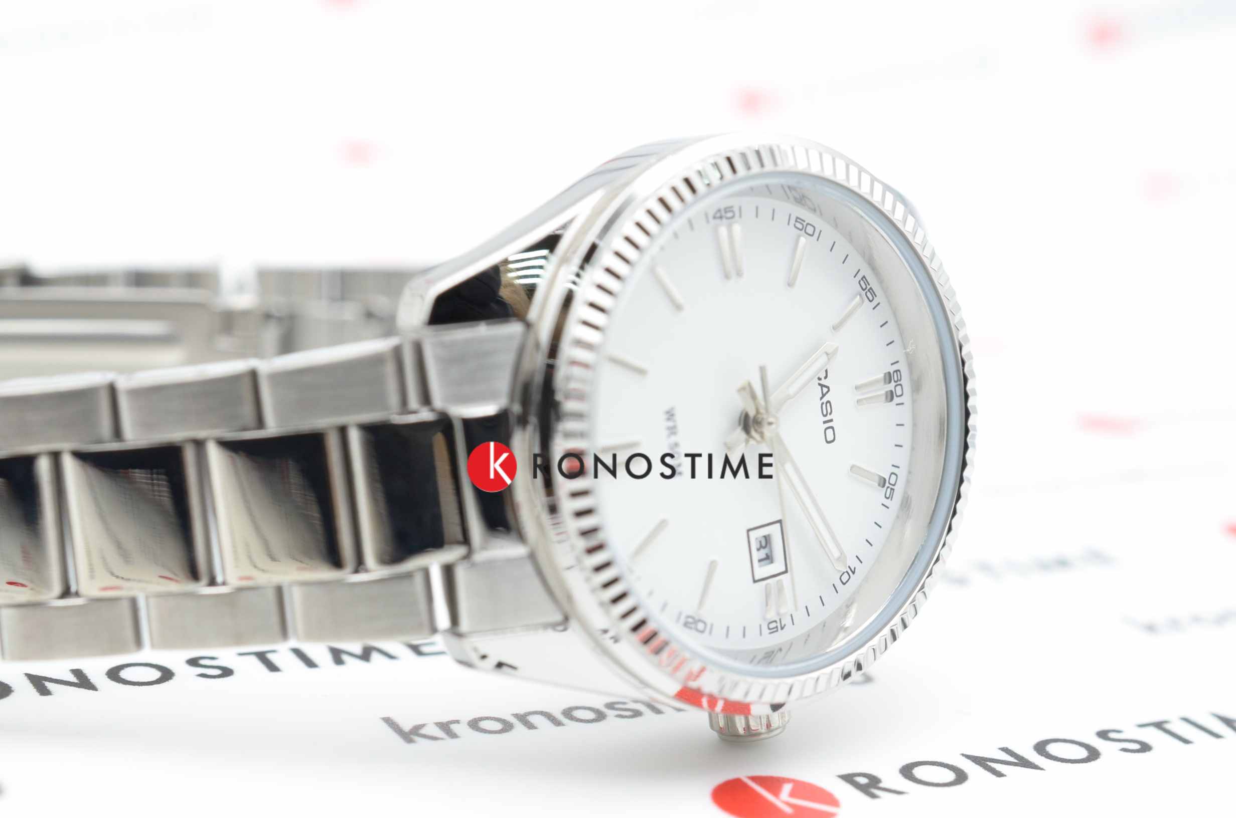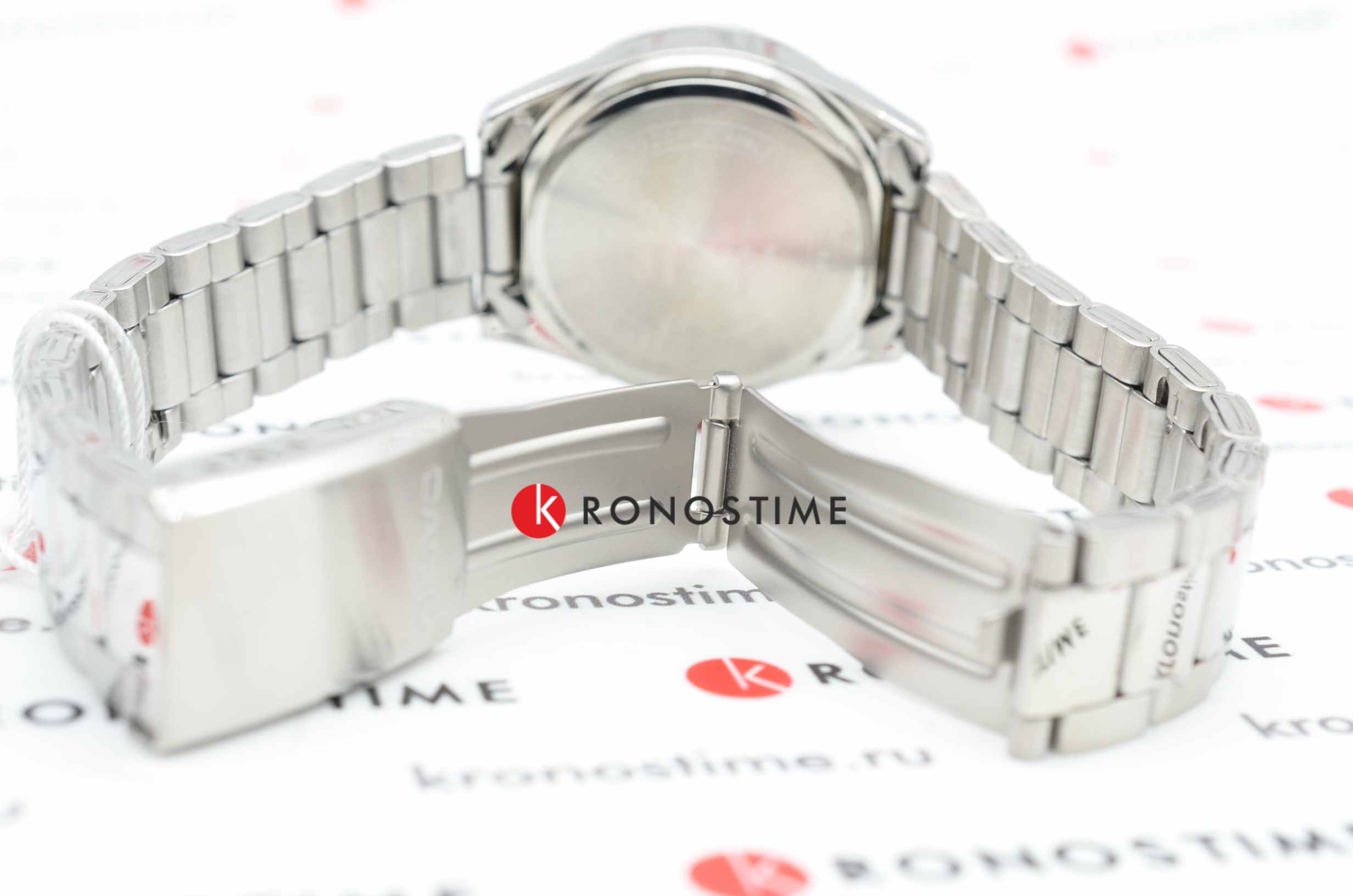 Цветовая расцветка наручных часов от Casio выдержана в сдержанных тонах. Корпус из гипоаллергенной латуни прочно закреплен с браслетом из нержавеющей стали. Застегиваются с помощью надежной раскладывающейся застежки. На круглом циферблате белого цвета расположены временные отметки в виде штрихов и арабских цифр. Часы защищены от повреждений минеральным стеклом. Водонепроницаемость равна 5 бар. Срок службы батарейки составляет 3 года. Вес часов равен 70 граммам.