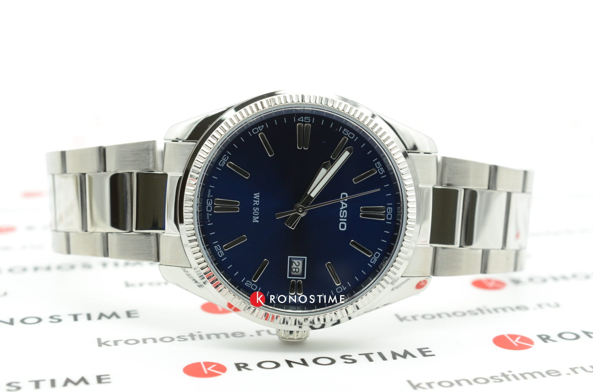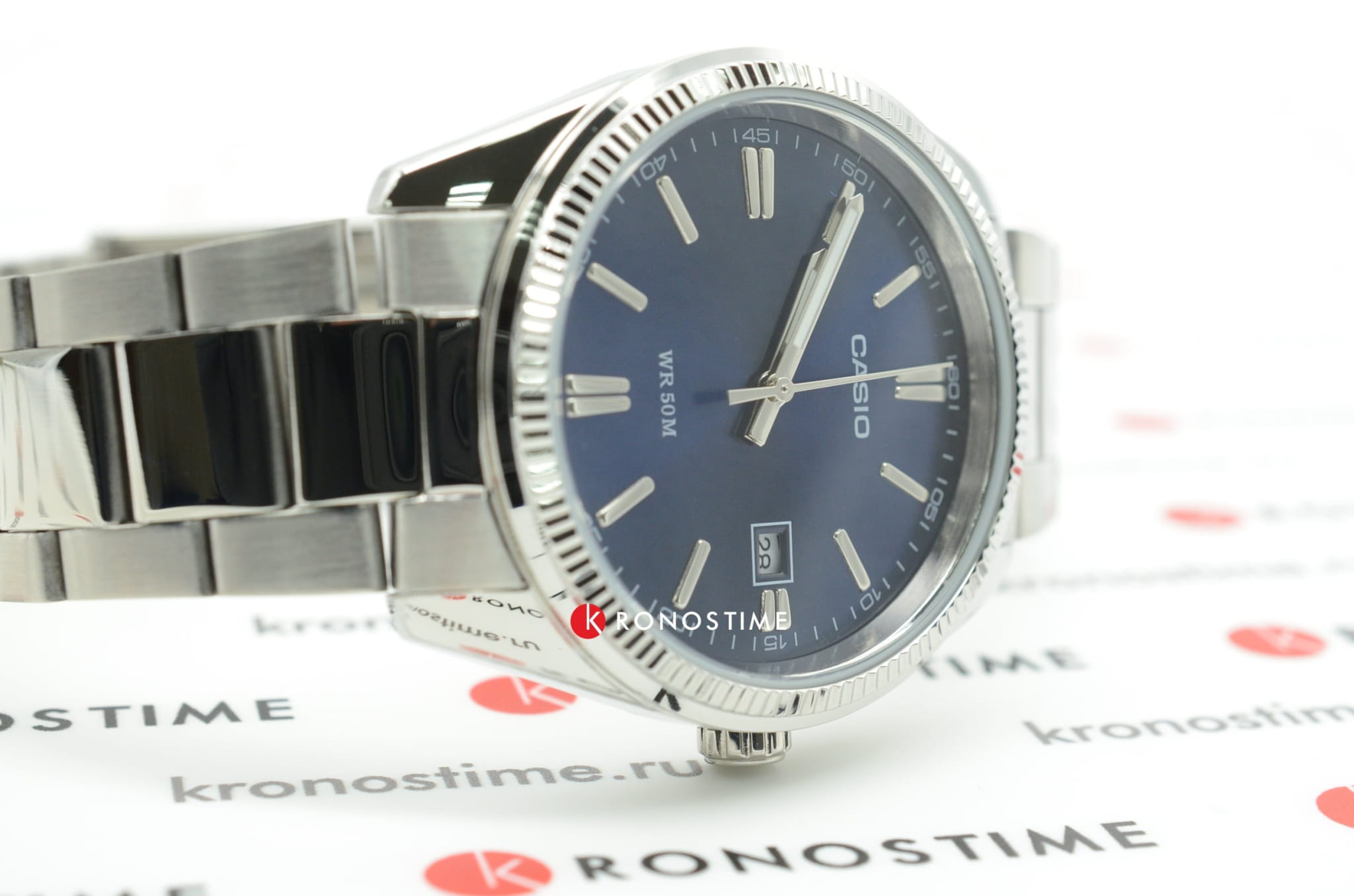 Модные часы от Casio в повседневном стиле способны покорить сердца любителей качества и комфорта. Прочный браслет из гипоаллергенной латуни надежно закреплен со стальным браслетом. Благодаря раскладывающейся застежке, вероятность потери аксессуара очень мала. Фактурный безельБезельВнешний ободок, закрепляющий стекло. В спортивных часах так называется поворотное кольцо с делениями на циферблате, выполняет роль таймера – замеряет отрезки времени на шкале. Неподвижный безель – элемент декора. Однонаправленно вращающийся безель на дайверских часах позволяет фиксировать моменты погружения и выныривания на поверхность. добавляет аксессуару привлекательности. На эффектном циферблате насыщенно-синего цвета расположены временные отметки в виде серебристых штрихов. Миниатюрный календарь в угловой рамке уведомляет о текущей дате. Подсветка NeobriteПодсветка NeobriteИспользование светонакопительных составов на основе сульфида цинка или алюмината стронция, яркий свет можно наблюдать на протяжении 6-10 часов после «зарядки» часов около источника света. позволяет определять время в темное время суток. Минеральное стекло. Водонепроницаемость составляет 50 WR. Кварцевый тип механизма. Срок службы батарейки равен 3 годам.