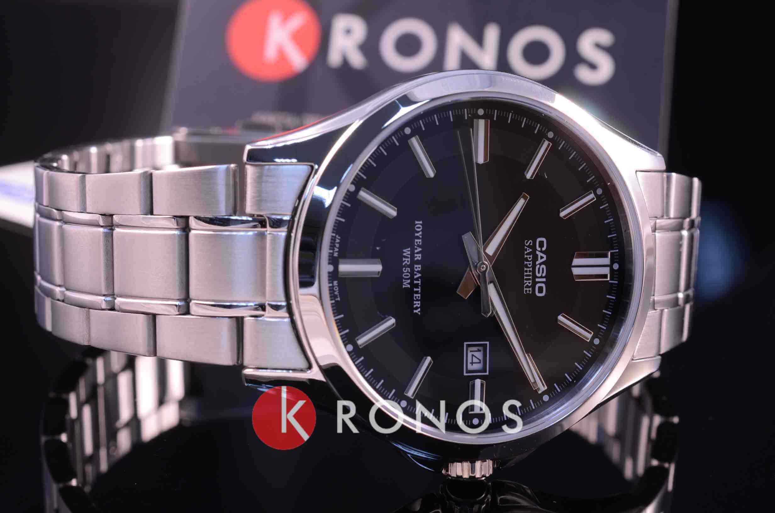 Японские мужские кварцевые часы с сапфировым стекломСапфировое стеклоПрочный и надёжный материал из кристалла сапфира синтетического происхождения, характеризующийся особой твёрдостью и устойчивостью к царапинам и повреждениям. Casio Collection MTS-100D-1A, кварцевый механизм с высокой точностью. Корпус и барслет часов изготовлены из нержавеющей. Подсветка NeobriteПодсветка NeobriteИспользование светонакопительных составов на основе сульфида цинка или алюмината стронция, яркий свет можно наблюдать на протяжении 6-10 часов после «зарядки» часов около источника света. обеспечивает длительное послесвечение в темноте даже после кратковременного нахождения на свету. Окошко даты находится в положении 3 часа. Батарея рассчитана на 10 лет. Заводная головка с защитой. Задняя крышка с винтовым фиксатором. Класс водозащиты: 50 метров, позволит защитить корпус от случайных брызг или капель дождя. Стальной браслет на раскладной застёжкеРаскладная застёжкаТакой тип застёжки используется только на браслетах из металла. Она никогда не раскрывается полностью, происходит разделение на 2 и более частей. Раскладывающая застёжка снизит вероятность потери часов к минимуму..