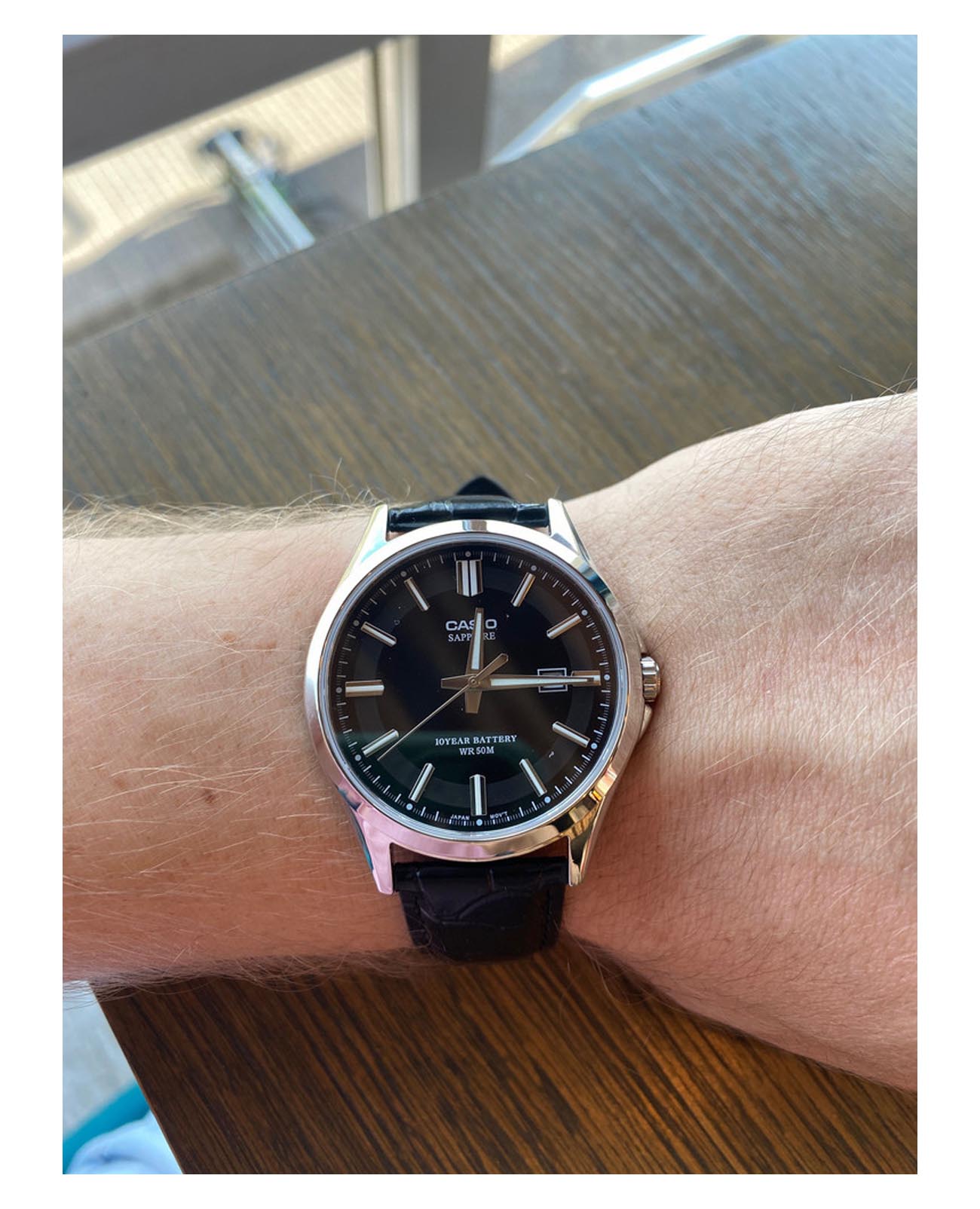 Японские мужские кварцевые часы с сапфировым стекломСапфировое стеклоПрочный и надёжный материал из кристалла сапфира синтетического происхождения, характеризующийся особой твёрдостью и устойчивостью к царапинам и повреждениям. Casio Collection MTS-100L-1A, кварцевый механизм с высокой точностью. Корпус часов изготовлен из нержавеющей. Подсветка NeobriteПодсветка NeobriteИспользование светонакопительных составов на основе сульфида цинка или алюмината стронция, яркий свет можно наблюдать на протяжении 6-10 часов после «зарядки» часов около источника света. обеспечивает длительное послесвечение в темноте даже после кратковременного нахождения на свету. Окошко даты находится в положении 3 часа. Батарея рассчитана на 10 лет. Заводная головка с защитой. Задняя крышка с винтовым фиксатором. Класс водозащиты: 50 метров, позволит защитить корпус от случайных брызг или капель дождя. Кожаный ремешок на стандартной застежке.
