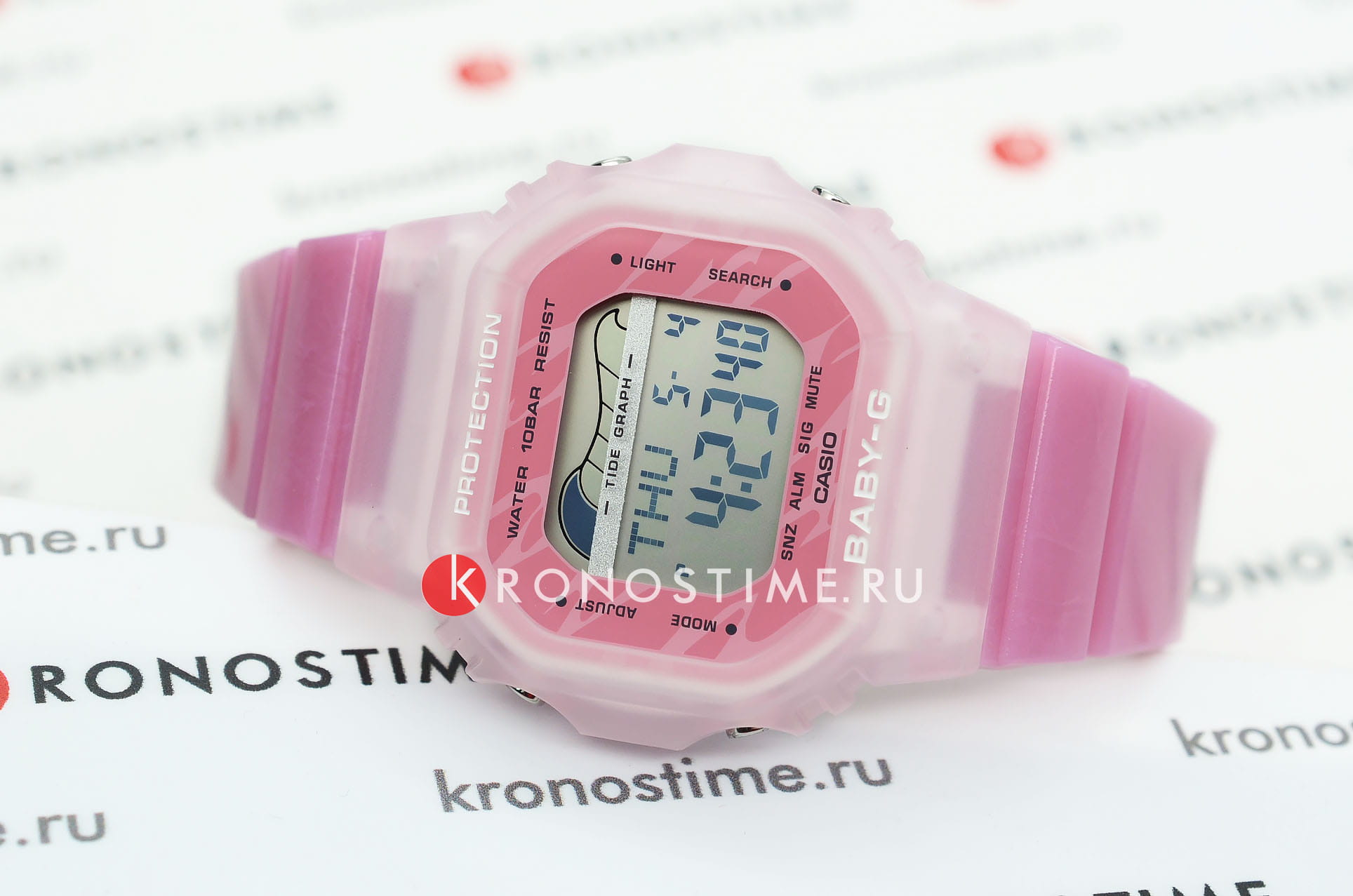 Женские японские часы-хронографХронографФункция позволяет измерять отрезки времени с особой точностью: часы, минуты, секунды. Верным признаком хронографа является наличие на циферблате 3 дополнительных окошек-счётчиков. Casio Baby-G BLX-565S-4E, кварцевый механизм с высокой точностью. Класс водозащиты: 100 метров, позволит плавать, нырять и заниматься другими водными видами спорта. Корпус часов изготовлен из пластика розового цвета. Ударопрочный корпусУдаропрочный корпусМеханизм заключён в корпус, выполненный из современных материалов, устойчивых к ударам, механическим повреждениям и падению с высоты: инновационный пластик, карбон, нержавеющая сталь, титан. защищает механизм от ударов и вибрации. Светодиодная подсветкаСветодиодная подсветкаСветодиодная или LED-подсветка обеспечивает появление яркого холодного свечения за счёт LED-элементов - маленьких лампочек. Они потребляют минимальное количество энергии, чаще всего можно встретить 1 светодиод, в нижней части циферблата. освещает весь циферблат, после отпускания кнопки свечение продолжается еще некоторое время. Особенность модели в функциях будильникаБудильникБуди́льник — часы, в заданный момент времени подающие звуковой, световой и/или в редких случаях другой сигнал., секундомераСекундомерСекундоме́р — прибор, способный измерять интервалы времени с точностью до долей секунды., таймераТаймерОтсчитывает секунды в обратном направлении в заданном интервале времени. и мирового времениМировое время Полезное часовое усложнение, отображающее время в основных городах и известных областях по всему миру, оно связано с часовыми поясами, удобно для путешественников и бизнесменов. . Циферблат подсвечивается ярким светодиодомСветодиодная подсветкаСветодиодная или LED-подсветка обеспечивает появление яркого холодного свечения за счёт LED-элементов - маленьких лампочек. Они потребляют минимальное количество энергии, чаще всего можно встретить 1 светодиод, в нижней части циферблата.. Послесвечение. Цвет подсветки: белый. Отображение возраста и фазы Луны. Отображение сведений о приливах и отливах на заданную дату и время. 12-ти и 24-х часовой формат времени. Функции включения/отключения летнего времени и включения/отключения звука. Батарея рассчитана на 3 года. Задняя крышка крепится на 4-х винтах.