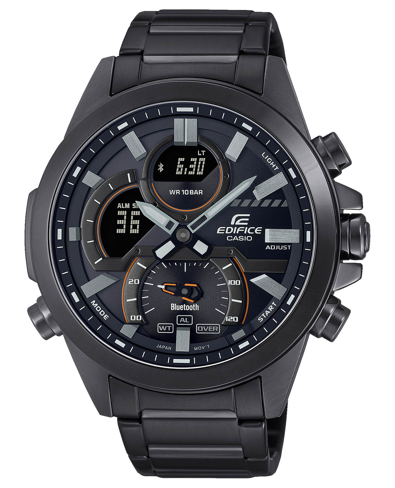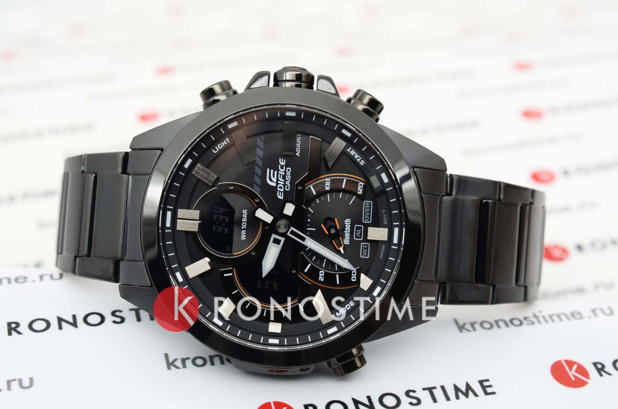 ). Автоматический переход на зимнее и летнее время, возможность включения/отключения данной функции. Переключение между домашним и мировым временем. Беспроводная технология BluetoothBluetoothСовременная технология, позволяющая синхронизировать часы с телефоном и переносить данные. Часы с Bluetooth расширяют возможности вашего смартфона и делают его использование ещё более удобным. со сверхнизким потреблением энергии для синхронизации со смартфоном. При подключении к смартфону часы корректируют текущее время, настраивают будильник, а также копируют настройки мирового времени (до 300 городов). Приложение EDIFICE Connected позволяет вести журнал показаний секундомера и прохождения этапов, вычислять разность между заданным временем и временем этапа. Отображение дней недели на шести языках. Смена отображения даты/месяца. Функции перемещения стрелок, поиска телефона и включения/отключения звука. Включение/выключение звукового сигнала по расписанию. Класс водозащиты: 100 метров, позволит плавать, нырять и заниматься другими водными видами спорта. Стальной браслет с IP-покрытиемIP-покрытиеМетод ионного напыления. Демонстрирует повышенную устойчивость к истиранию, окислению и химическим веществам. Под воздействием высокого давления и температуры около 1500°C молекулы металла надёжно соединяются с частицами корпуса часов. на раскладной застёжкеРаскладная застёжкаТакой тип застёжки используется только на браслетах из металла. Она никогда не раскрывается полностью, происходит разделение на 2 и более частей. Раскладывающая застёжка снизит вероятность потери часов к минимуму..