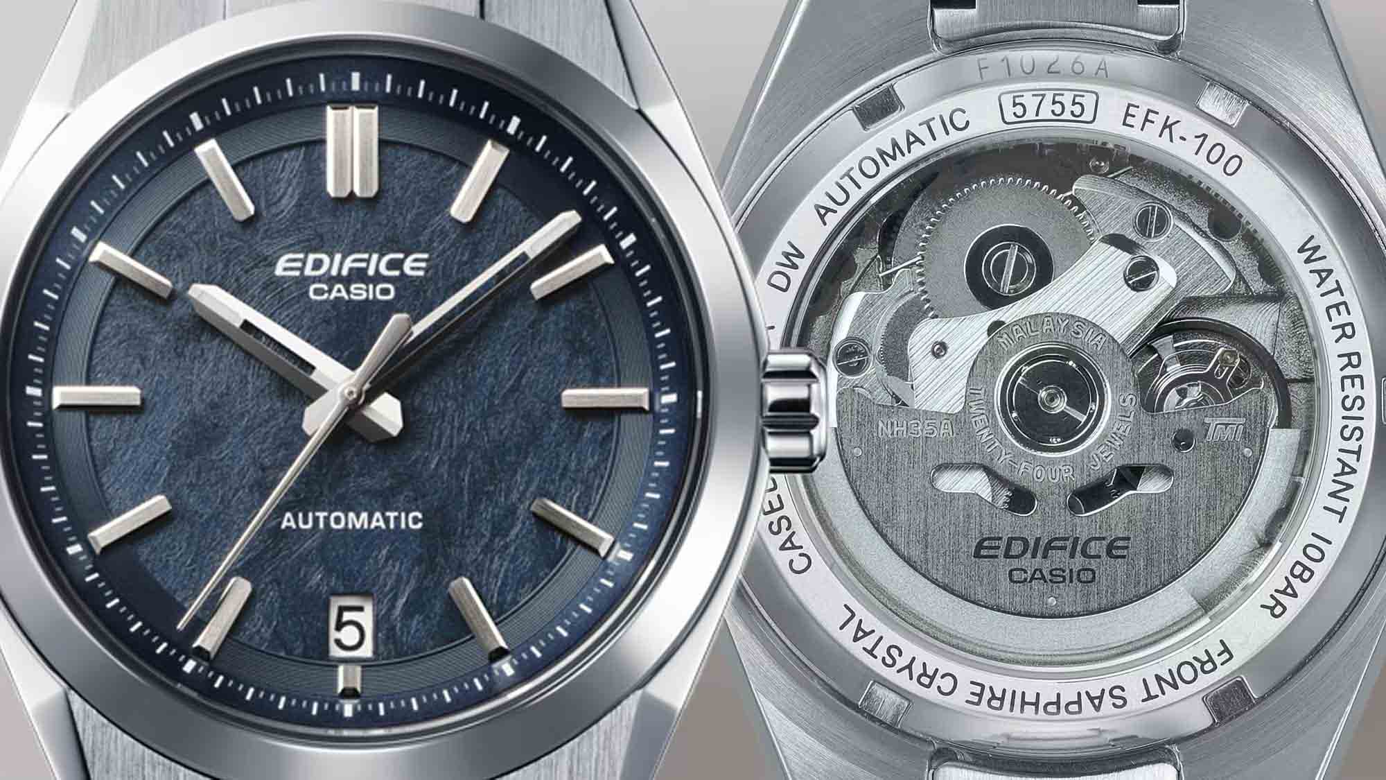 Мужские механические часы Casio Edifice EFK-100D-2A — это стильный аксессуар, сочетающий в себе надёжность и функциональность. Модель выполнена из нержавеющей стали с размерами корпуса 43,5x39x12,5 мм, а его масса составляет 148 г. Защиту механизма обеспечивает сапфировое стеклоСапфировое стеклоПрочный и надёжный материал из кристалла сапфира синтетического происхождения, характеризующийся особой твёрдостью и устойчивостью к царапинам и повреждениям., устойчивое к повреждениям. Задняя пластина имеет прозрачную форму с винтовым замком, что позволяет наблюдать за работой механизма. Браслет из нержавеющей стали оснащён тройной застёжкой с одним касанием, обеспечивающей комфорт и надёжную фиксацию. Стандартный размер ремешка регулируется от 150 до 205 мм. Часы водонепроницаемы до 10 бар (, что позволяет использовать их при плавании и других водных активностях без глубокого погружения. Точность хода составляет ±45 секунд в день, а запас хода — около 40 часов. Часы имеют 24 драгоценных камня и частоту колебаний 21 600 полуколебаний в час. Эти часы станут универсальным аксессуаром для тех, кто ценит сочетание стиля, функциональности и надёжности — идеальный выбор для повседневной носки и активного образа жизни.