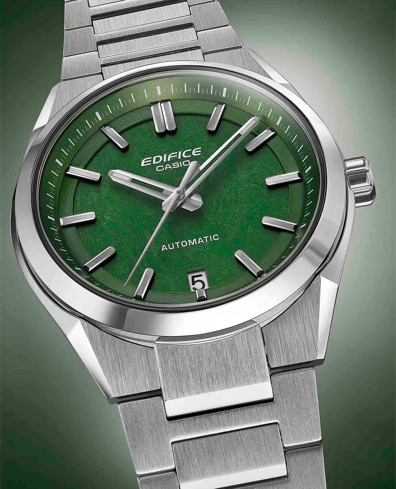 Мужские механические часы Casio Edifice EFK-100D-3ADR — это стильный аксессуар, сочетающий в себе надёжность и функциональность. Модель выполнена из нержавеющей стали с размерами корпуса 43,5x39x12,5 мм, а его масса составляет 148 г. Защиту механизма обеспечивает сапфировое стеклоСапфировое стеклоПрочный и надёжный материал из кристалла сапфира синтетического происхождения, характеризующийся особой твёрдостью и устойчивостью к царапинам и повреждениям., устойчивое к повреждениям. Задняя пластина имеет прозрачную форму с винтовым замком, что позволяет наблюдать за работой механизма. Браслет из нержавеющей стали оснащён тройной застёжкой с одним касанием, обеспечивающей комфорт и надёжную фиксацию. Стандартный размер ремешка регулируется от 150 до 205 мм. Часы водонепроницаемы до 10 бар (, что позволяет использовать их при плавании и других водных активностях без глубокого погружения. Точность хода составляет ±45 секунд в день, а запас хода — около 40 часов. Часы имеют 24 драгоценных камня и частоту колебаний 21 600 полуколебаний в час. Эти часы станут универсальным аксессуаром для тех, кто ценит сочетание стиля, функциональности и надёжности — идеальный выбор для повседневной носки и активного образа жизни.