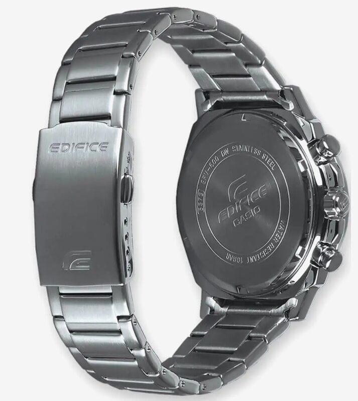 Японские мужские часы с хронографом Casio Edifice EFV-600D-3CVUDF (EFV-600D-3C), кварцевый механизм с высокой точностью. Класс водозащиты: 100 метров, позволит плавать, нырять и заниматься другими водными видами спорта. Корпус часов изготовлен из стали, цвета.